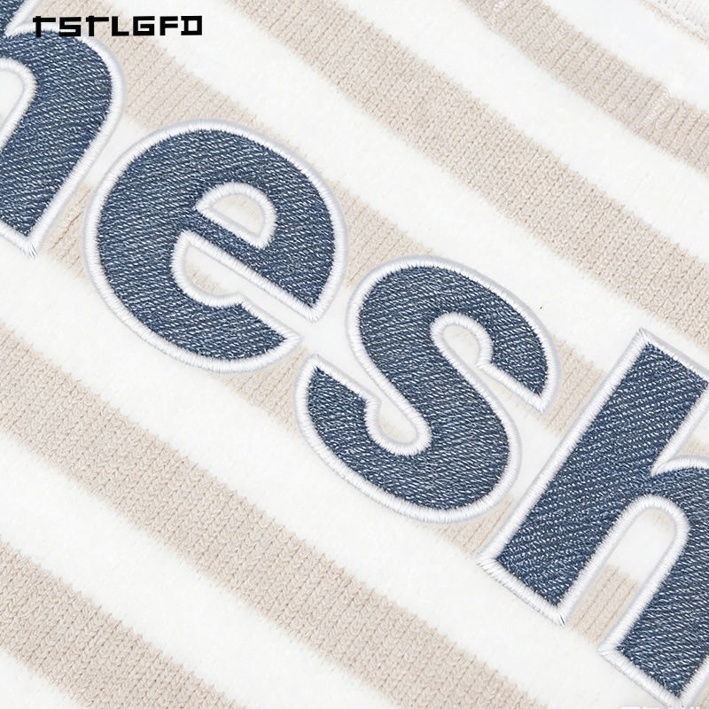 เสื้อยืดแขนยาวผู้ชายลายทางวินเทจทรงหลวมโอเวอร์ไซส์ แบบคอตก ผลิตตามสั่ง ถักทอจากผ้าฝ้าย/โพลีเอสเตอร์ 100% เป็นมิตรต่อสิ่งแวดล้อม