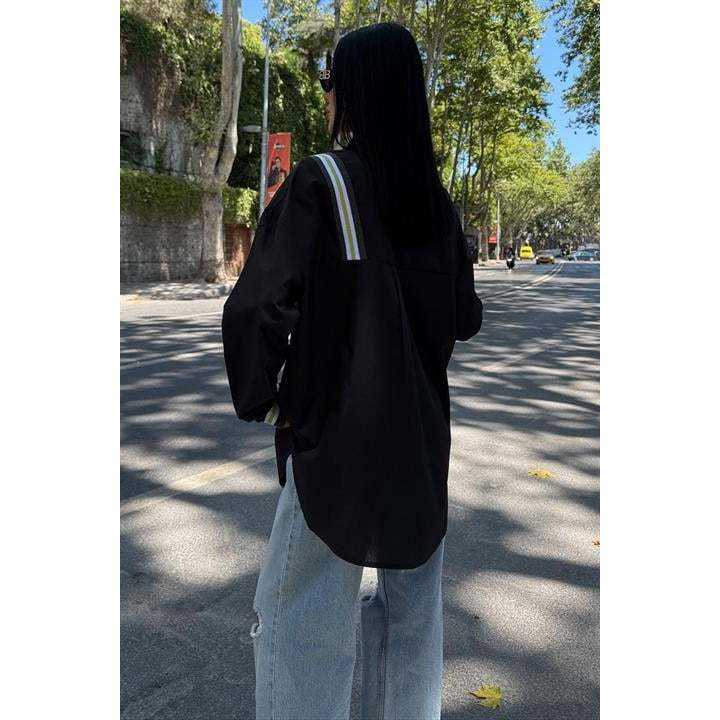 เสื้อเชิ้ตป๊อปลินโอเวอร์ไซส์ลำลอง รุ่น 3436 พร้อมดีเทลแถบผ้า