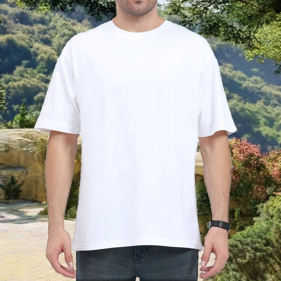 เสื้อยืดโอเวอร์ไซส์สำหรับผู้ชาย ผ้าถักเรียบสีพื้น 100% ผ้าฝ้าย ระบายอากาศได้ดี เป็นมิตรกับสิ่งแวดล้อม ปรับแต่งได้ แขนสั้น