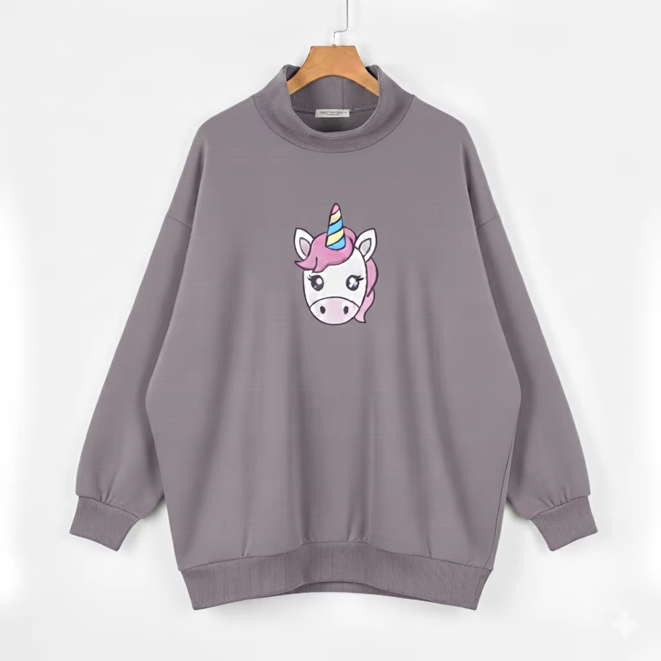 เสื้อสเวตเชิ้ตคอเต่าพิมพ์ลายปักเลื่อมขนาดใหญ่พิเศษสำหรับผู้หญิง ผ้าฟลีซเนื้อนุ่ม ผ้าฝ้ายทรงหลวม สไตล์สตรีทแวร์สำหรับฤดูหนาว แฟชั่นลำลองสำหรับใส่ทุกวัน
