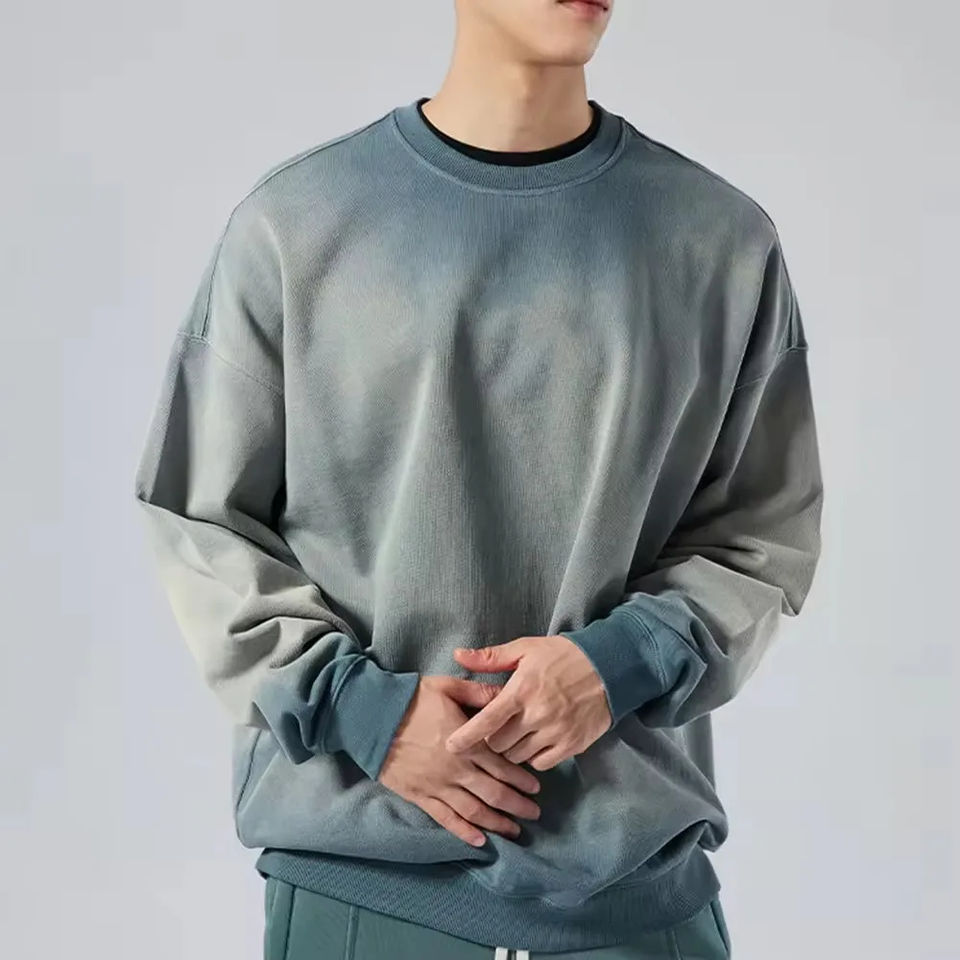 เสื้อสเวตเตอร์ผู้ชายลำลอง คุณภาพสูง ผ้าฟอกสีแบบกัดสี เหมาะสำหรับฤดูหนาว