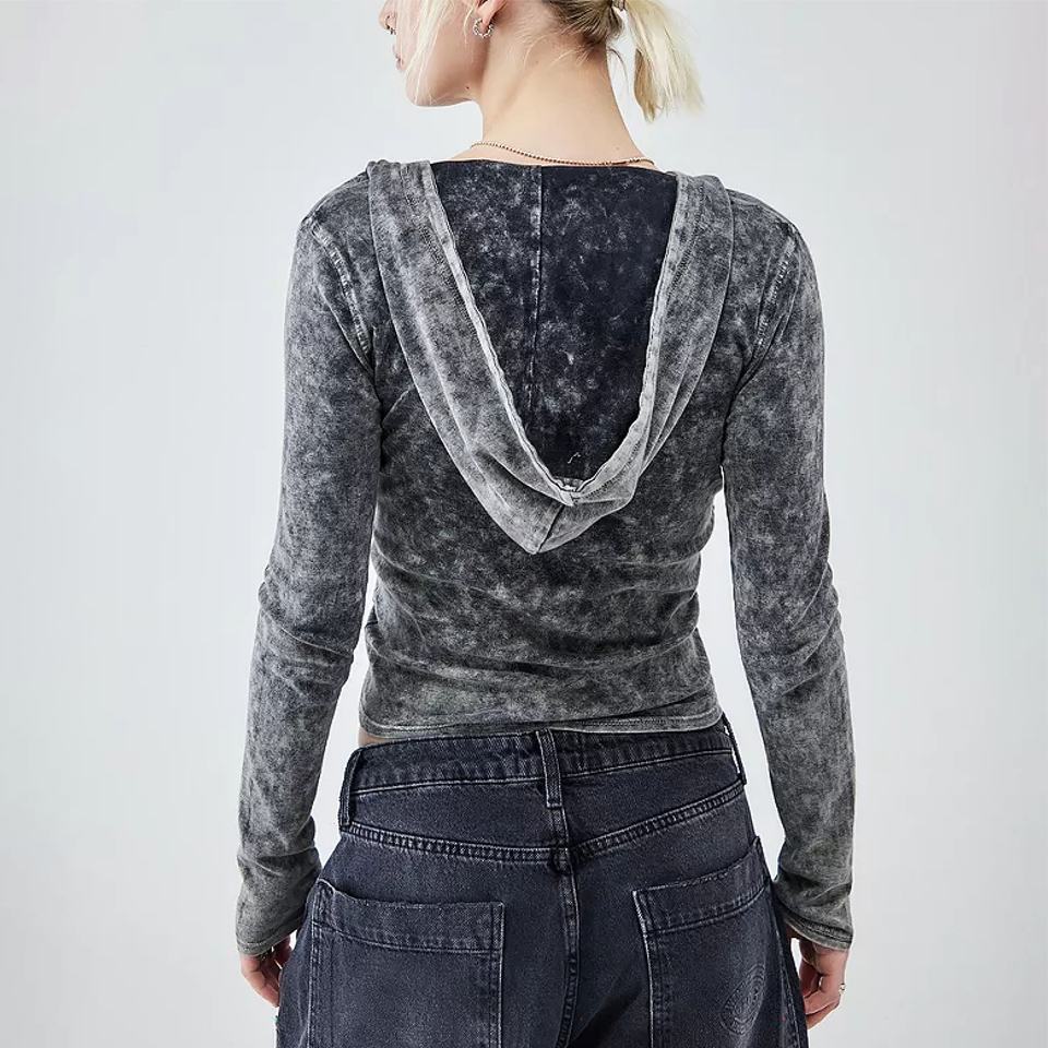 เสื้อฮู้ดดี้โอเวอร์ไซส์สำหรับผู้หญิง ล้างสีแบบ Acid Wash สำหรับขายออนไลน์ สินค้ามาใหม่ ทรงหลวม ผูกเชือก ป้องกันขนร่วง ระบายอากาศได้ดี