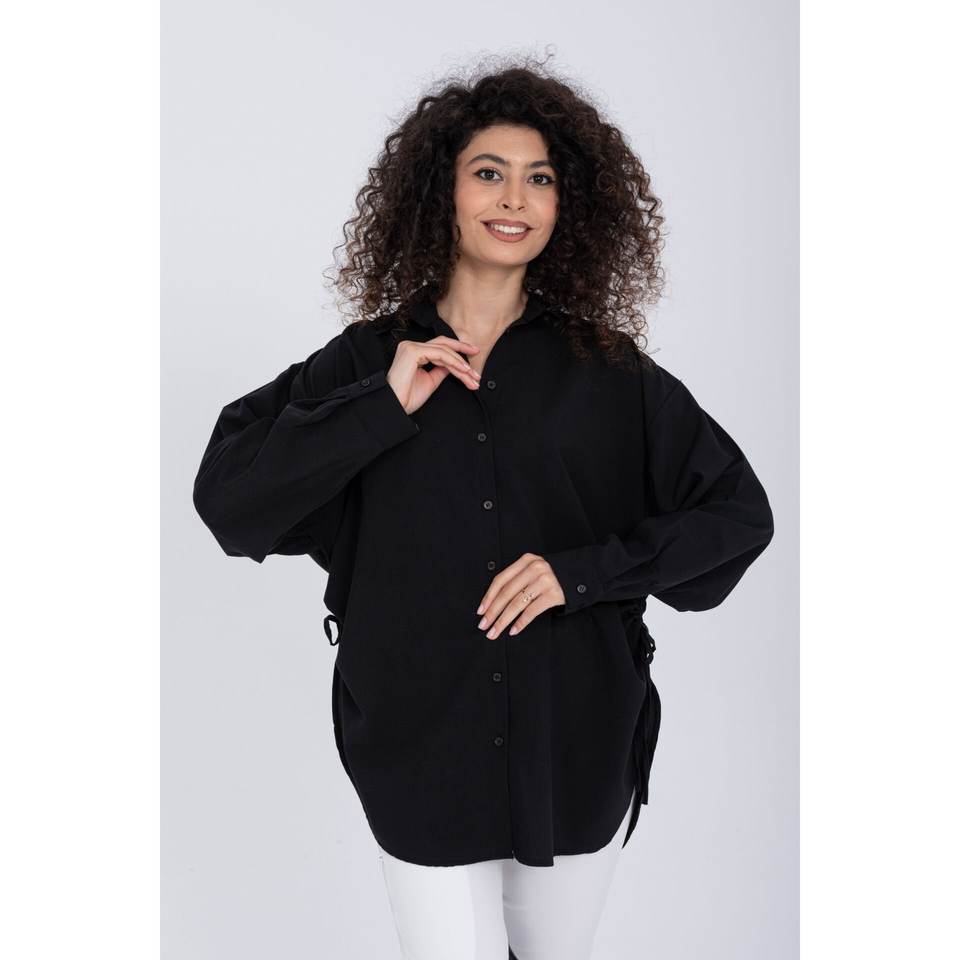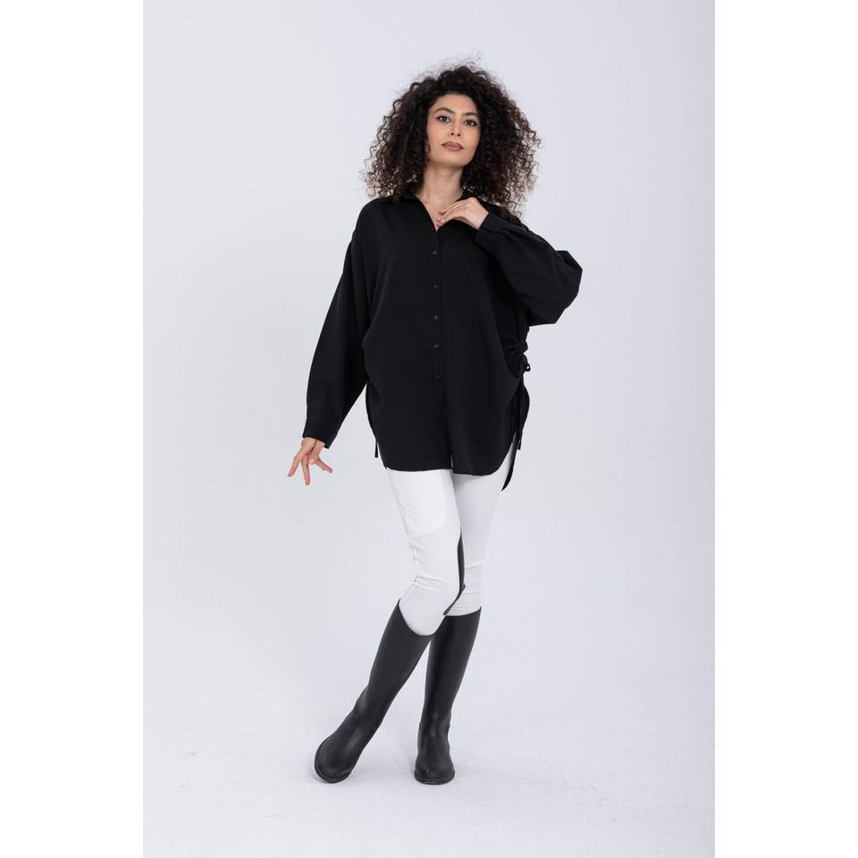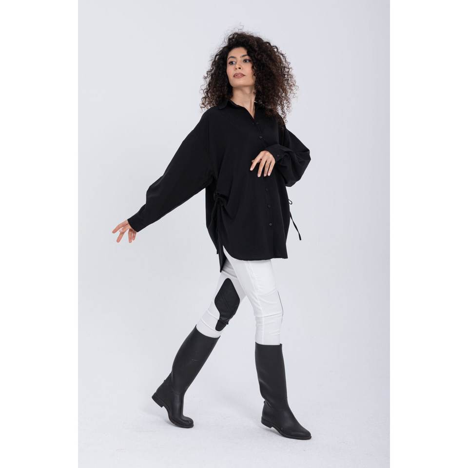 Oversize Yandan Büzgülü Kadın Gömlek Siyah