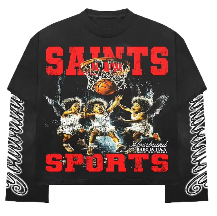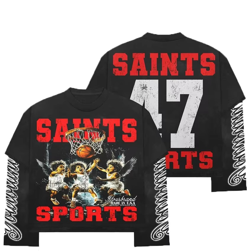 เสื้อทีเชิ้ตแขนสองชั้นสำหรับผู้ชายเสื้อยืดกราฟิกบ็อกซี่ผ้าฝ้าย100% โอเวอร์ไซส์ออกแบบได้ตามต้องการผลิต