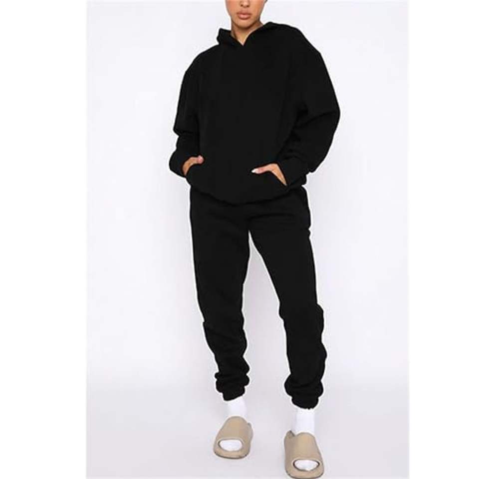 ชุดเสื้อผ้าผู้ชายสำหรับฤดูหนาวแบบ 2 ชิ้น ไซส์ใหญ่ เสื้อฮู้ดดี้ทรงหลวม ผ้าทอระบายอากาศ กางเกงจ็อกเกอร์ ผ้าฝ้ายฟลีซ 100% แบบสั่งทำ