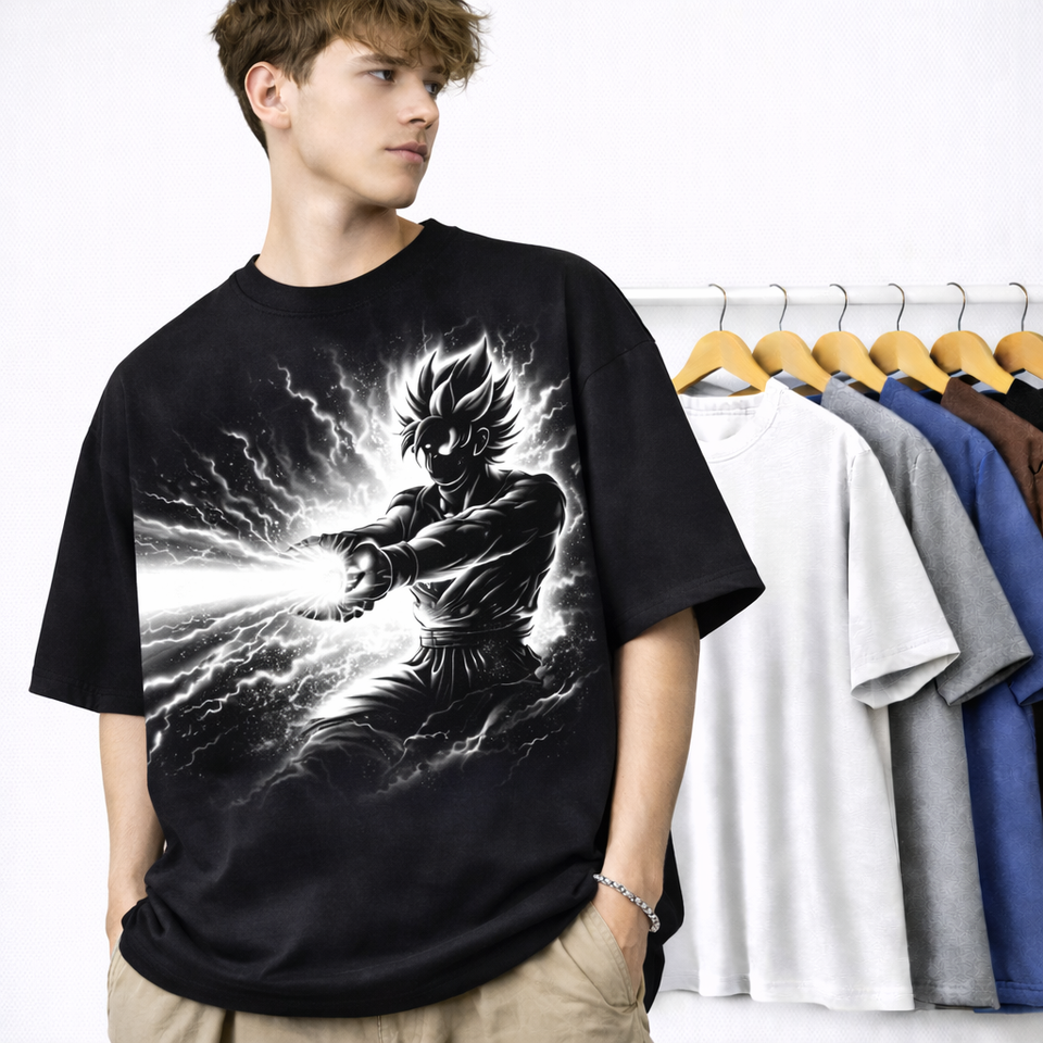 เสื้อยืดลายกราฟิกสไตล์อนิเมะขนาดใหญ่พิเศษ | ผ้าฝ้ายแท้ 100% พิมพ์ลายตามสั่ง โรงงาน OEM ดีไซน์ขาวดำ สำหรับขายส่งแบบดรอปชิปปิ้ง