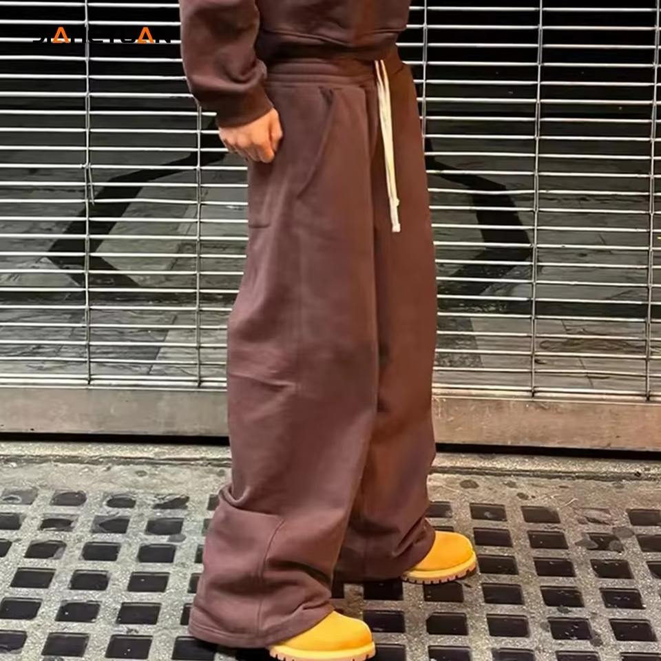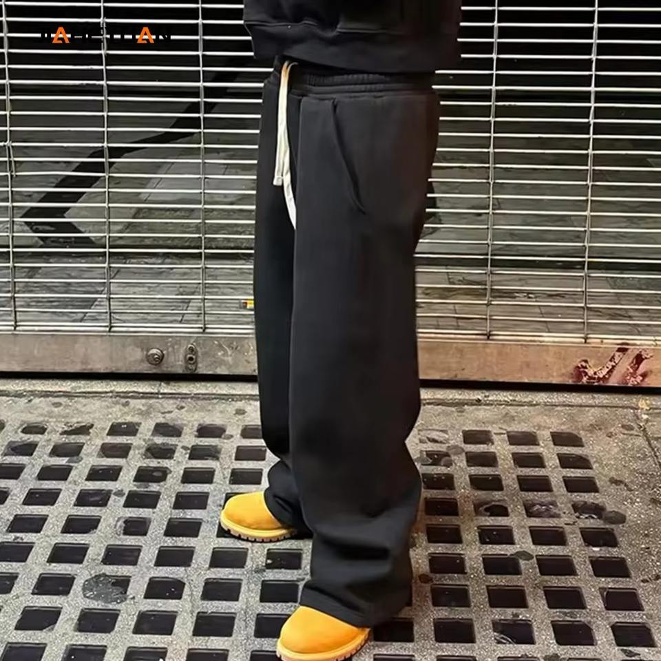 กางเกงวอร์มทรงแบ็กกี้โอเวอร์ไซส์ของผู้ชายกางเกงผ้าแคนวาสสีทรงหลวมใส่ในเมืองมีเชือกผูกเอวสไตล์ลำลอง