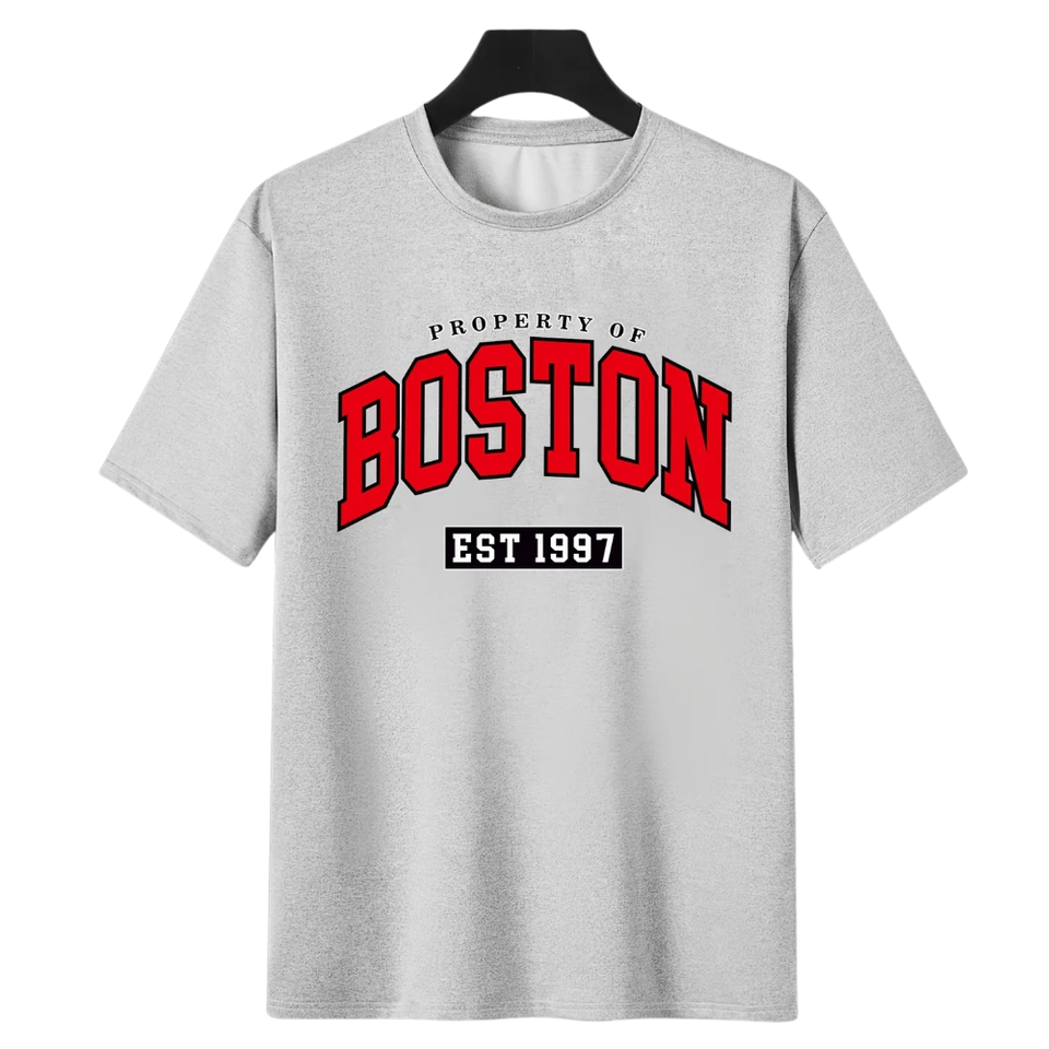 เสื้อยืดลายกราฟิกสไตล์บอสตันสำหรับผู้ชายและผู้หญิงเสื้อแนวสตรีทเสื้อยืดพิมพ์ลายสไตล์วิทยาลัยเสื้อลำลองผ้าฝ้ายฤดูร้อนออกแบบโลโก้ได้ตามต้องการ
