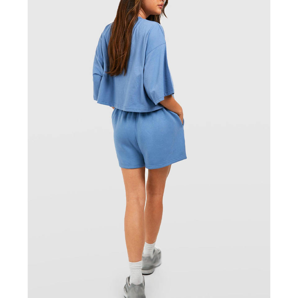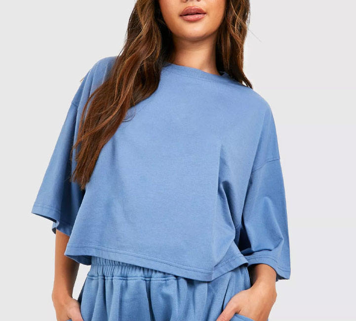 ชุดเสื้อเจอร์ซีย์แขนสั้นคอกลมและกางเกงขาสั้นผู้หญิง ผ้าคอตตอนผสมสแปนเด็กซ์คุณภาพเยี่ยม ยืดหยุ่นได้ ทรงโอเวอร์ไซส์