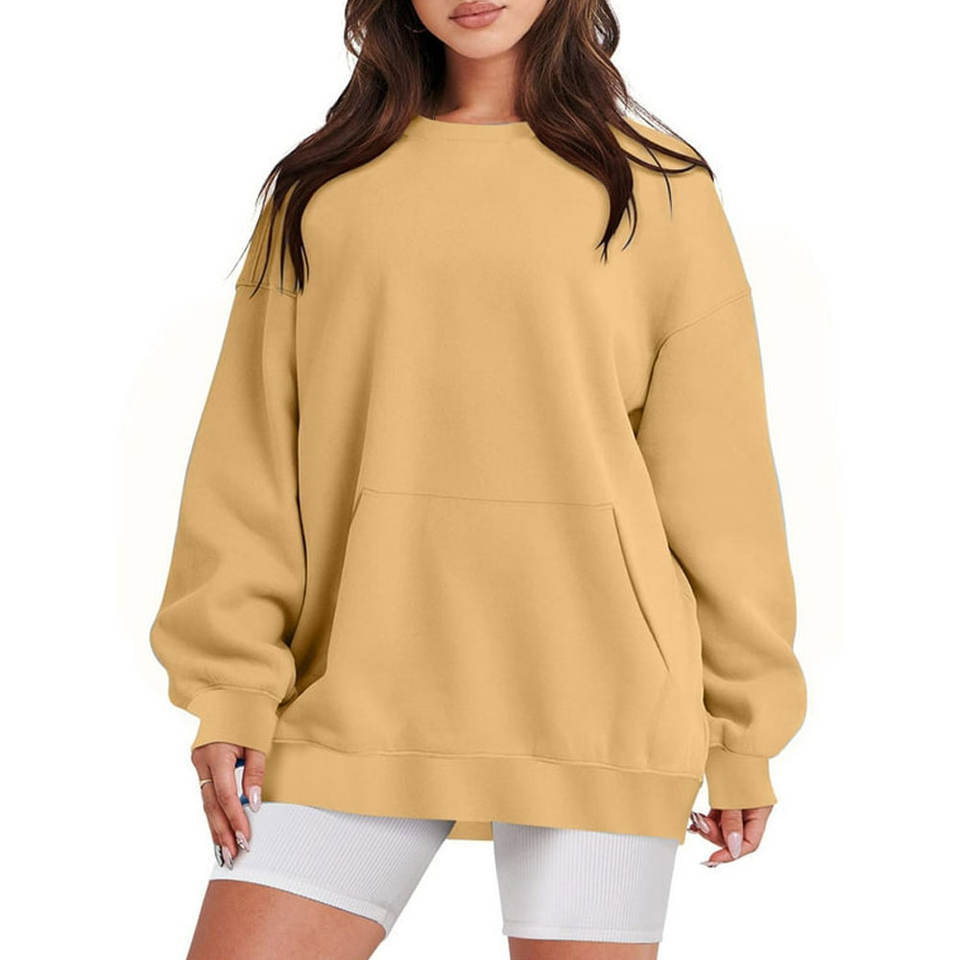 เสื้อฮู้ดโอเวอร์ไซส์ผ้าฝ้ายสำหรับผู้หญิง สวมใส่สบาย แขนยาว ออกแบบโลโก้ด้านหน้าได้ตามต้องการ ผ้าถัก ระบายอากาศได้ดี เหมาะสำหรับฤดูใบไม้ร่วงและฤดูหนาว