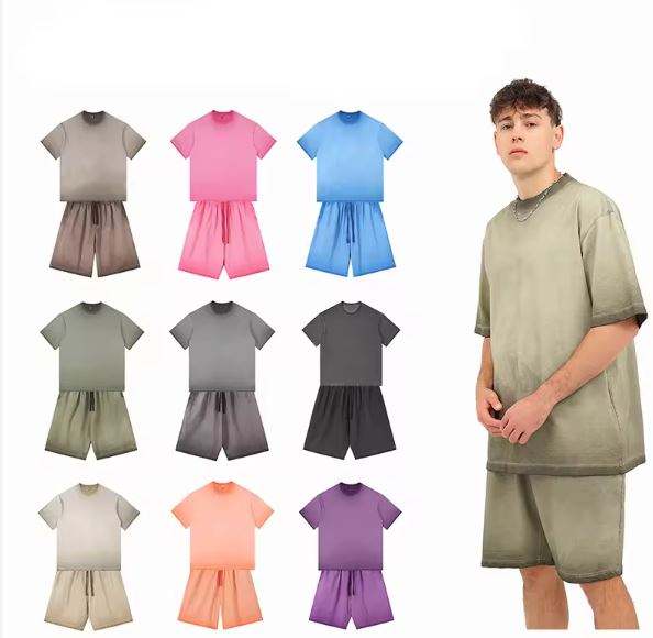 ชุดเสื้อยืดกางเกงขาสั้นผ้าฝ้ายโอเวอร์ไซส์สำหรับผู้ชายชุดออกกำลังกายลำลองพิมพ์ลายทันสมัยชุดสูทแขนสั้นคอสำหรับฤดูร้อนขนาดใหญ่พิเศษ