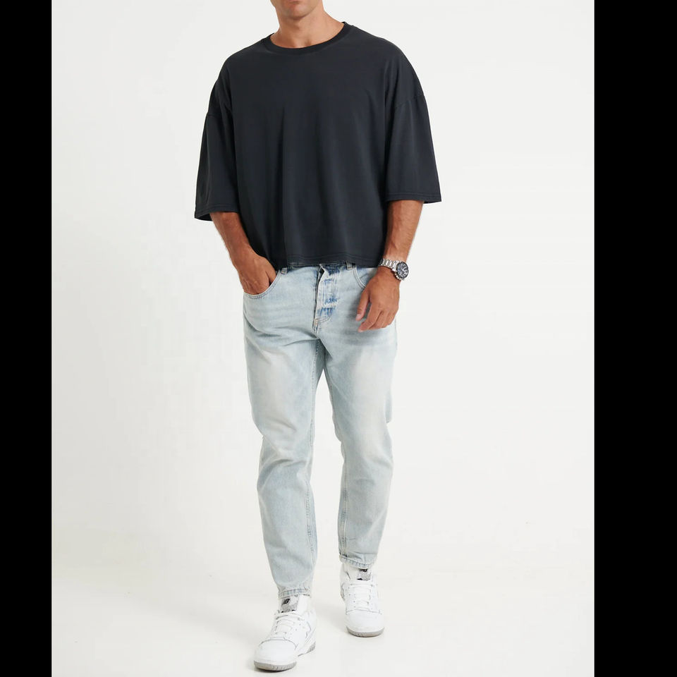 เสื้อยืดทรงครอปโอเวอร์ไซส์ แขนสั้น ผ้าถัก 100% ผ้าฝ้าย ทรงหลวม ไหล่ตก สไตล์สตรีทแวร์ สำหรับผู้ชาย พิมพ์ลายตามสั่ง เป็นมิตรกับสิ่งแวดล้อม
