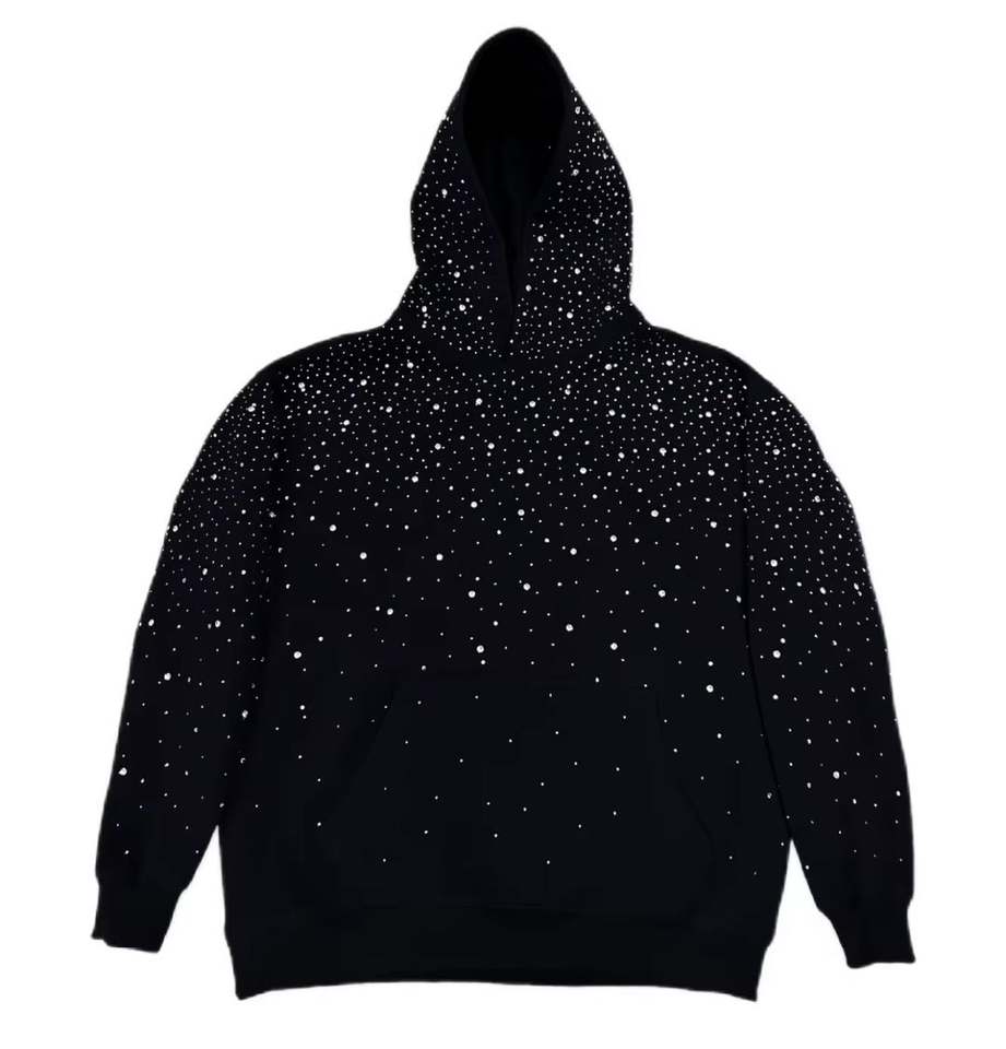 เสื้อฮู้ดซิปพิมพ์ลายขนาดใหญ่พิเศษ ประดับคริสตัลหรูหรา สไตล์สตรีทแวร์ แฟชั่นยูนิเซ็กส์ พรีเมียม สำหรับฤดูหนาว ผ้าฝ้าย 100%