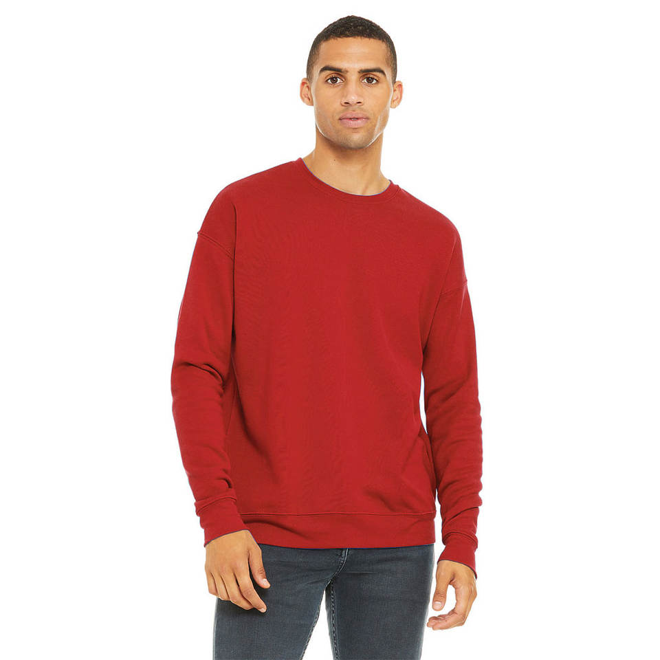 ขนาดใหญ่ที่กําหนดเองSweatshirt Bella + ผ้าใบ 3945 Unisexไหล่หล่นขนแกะสีแดงไหล่หล่นCrewneckเสื้อกันหนาวผู้ใหญ่
