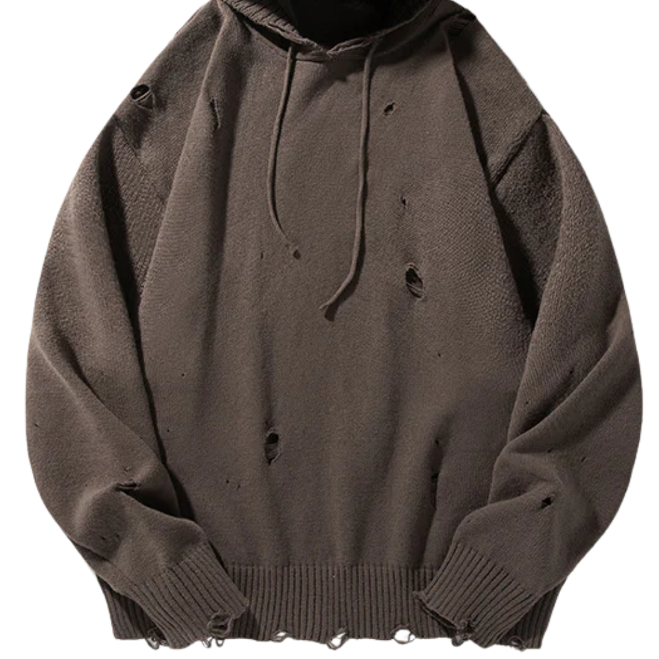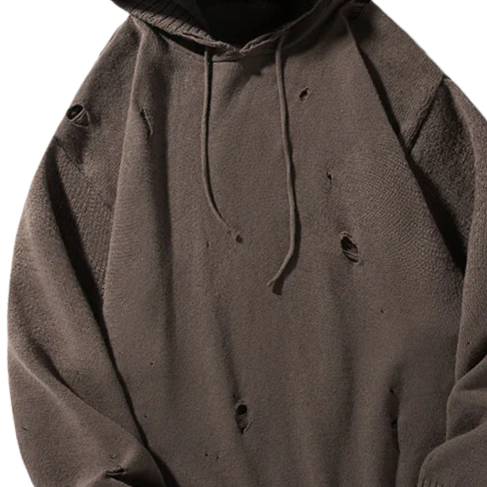 สเวตเชิ้ตมีฮู้ดแบบสวมศีรษะทรงหลวมผ้าคอตตอนขนาดใหญ่แนวสตรีทวินเทจขาดแบบโอเวอร์ไซส์สำหรับผู้ชายและผู้หญิง