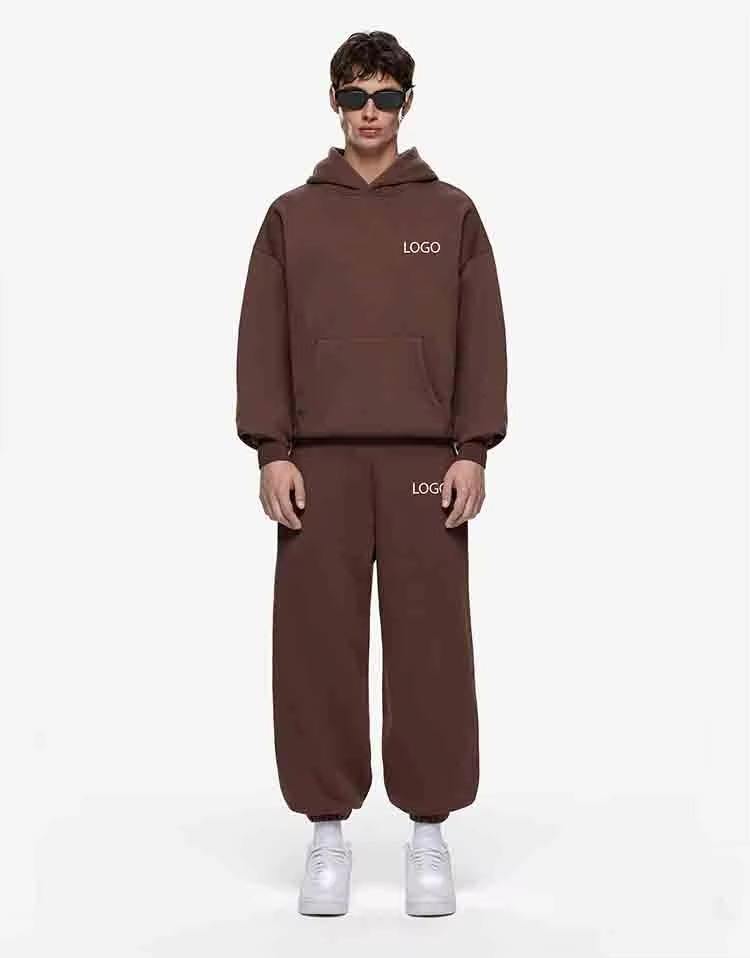 เสื้อมีฮู้ดแบบสวมหัวและกางเกงจ็อกเกอร์ชุดวอร์มใช้ได้ทั้งชายหญิงโอเวอร์ไซส์ทำโลโก้ได้ตามน้ำหนักสองชั้นใส่500GSM เฟรนช์เทอร์รี่ออกแบบได้ตามต้องการ