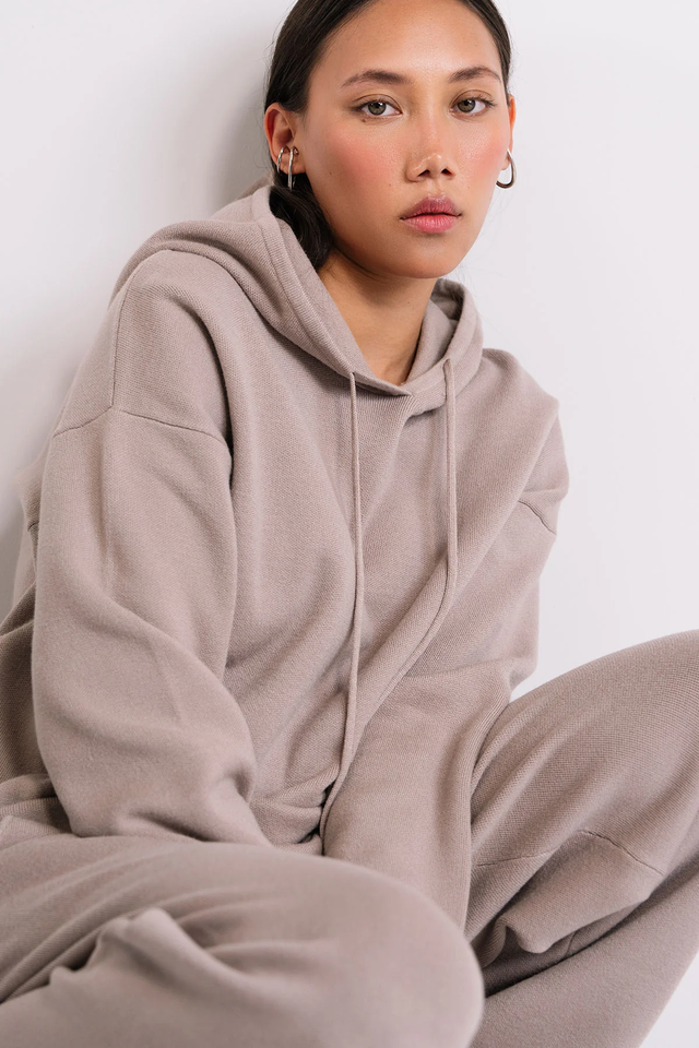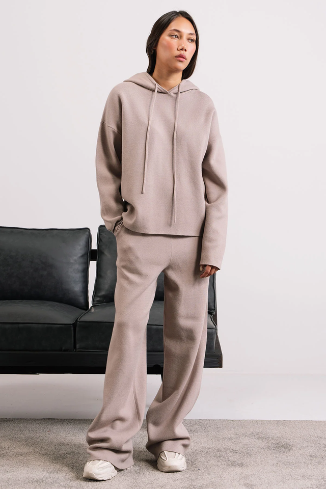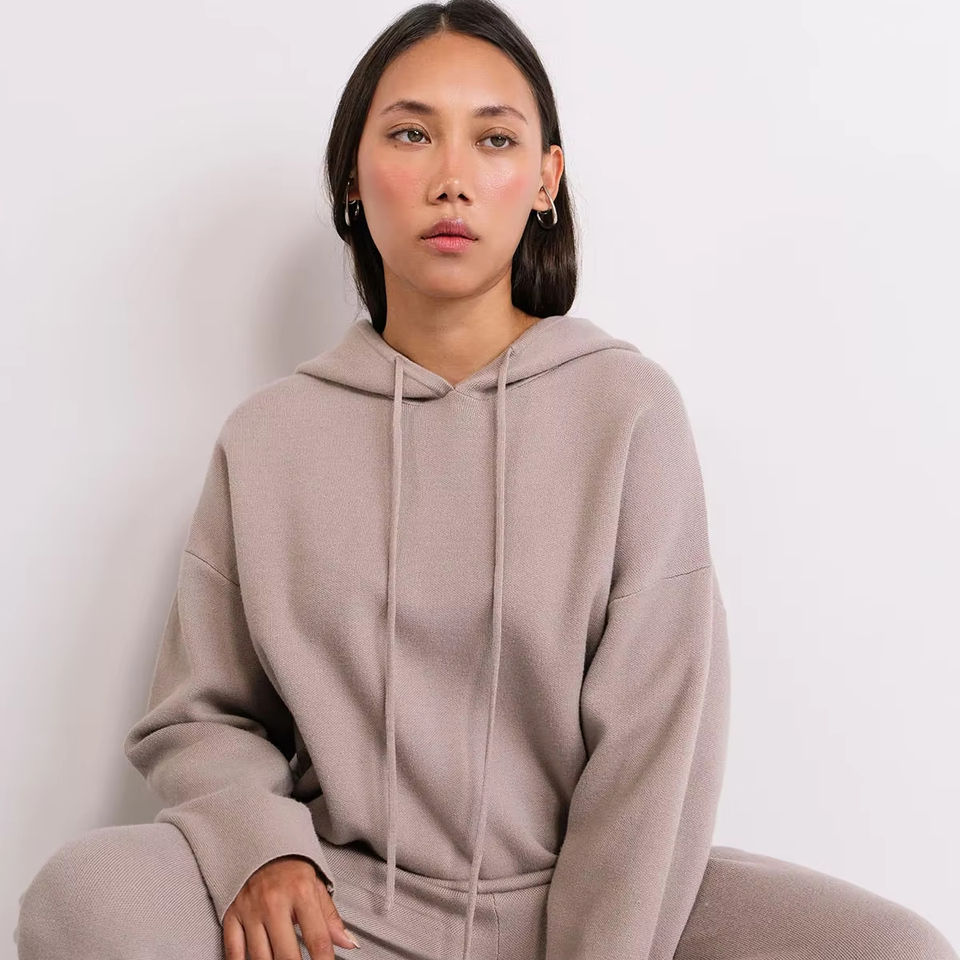 ชุดเซต2ชิ้นเปิดไหล่โอเวอร์ไซส์กางเกงวิ่งขายาวมีฮู้ดปักลายเทอร์รี่
