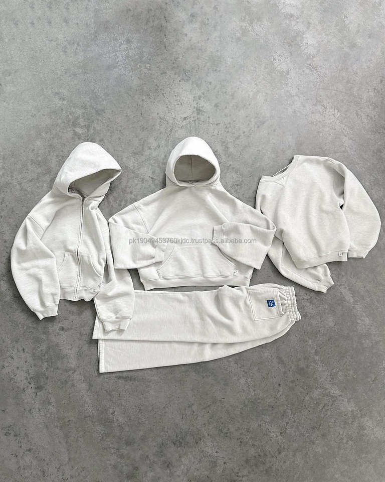 ชุดวอร์ม2ชิ้นเสื้อมีฮู้ดไหล่และกางเกงขาตรงทรงโอเวอร์ไซส์
