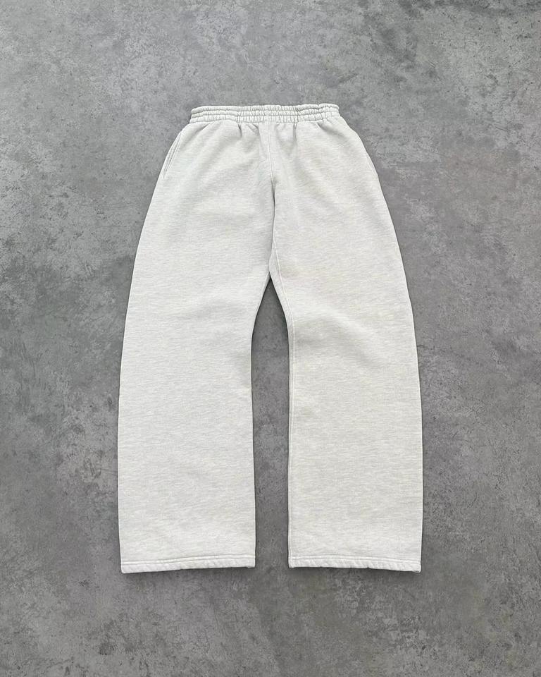 ชุดวอร์ม2ชิ้นพร้อมโลโก้และเสื้อมีฮู้ดที่ออกแบบเองบนไหล่ตกขนาดใหญ่และกางเกงขาตรง