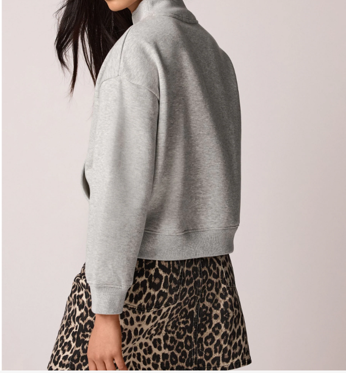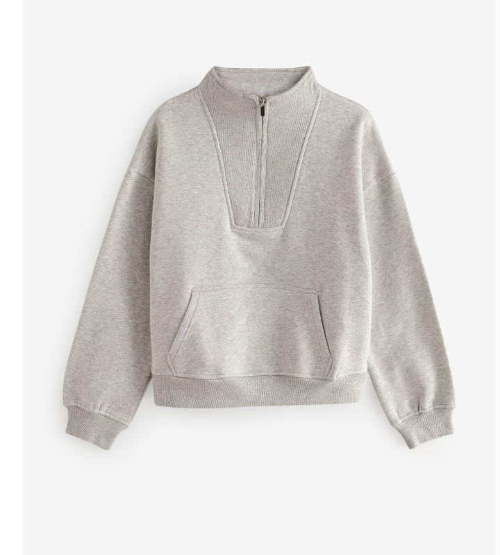 เสื้อสเวตเตอร์สวมหัวคอกลมปักโอเวอร์ไซส์ผ้าคอตตอนผ้าฟลีซแบบรูดซิปครึ่งตัว