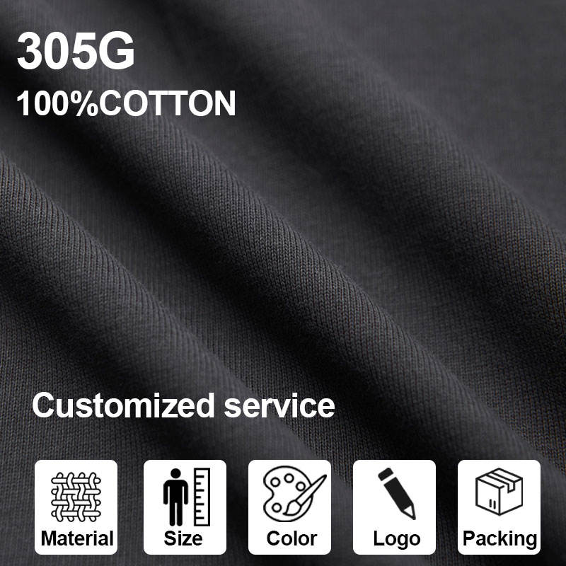 เสื้อยืดคอวีแนววินเทจของผู้ชายทรงโอเวอร์ไซส์เข้ารูป305GSM เสื้อยืดลำลองผ้าคอตตอน100% ออกแบบโลโก้ได้ตามต้องการสำหรับสตรีทแวร์