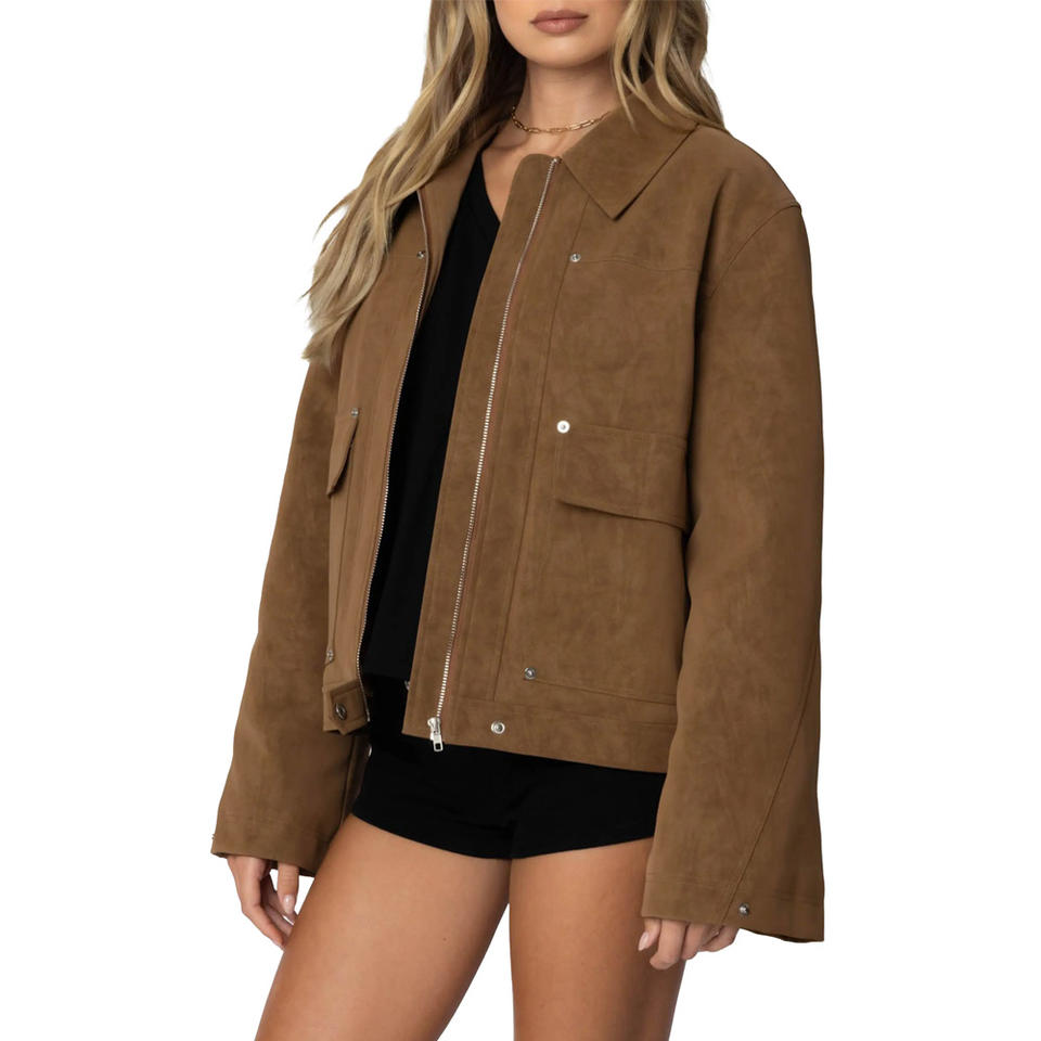 เสื้อแจ็คเก็ตหนังกลับผู้หญิงคุณภาพสูง