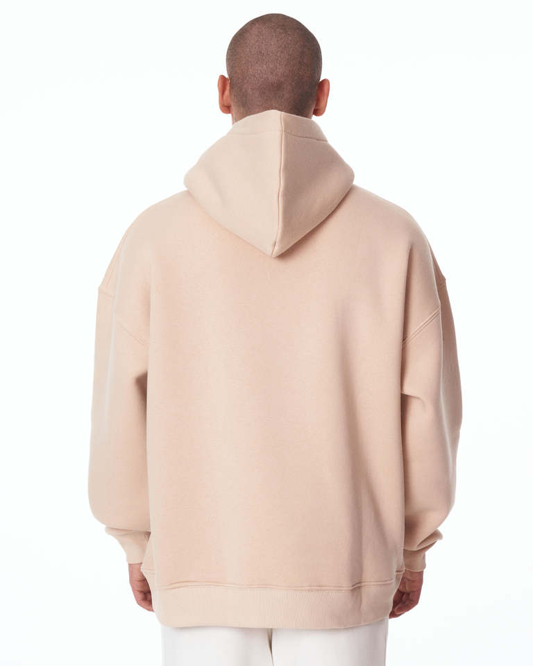 เสื้อฮู้ดผ้าฟลีซหนาแบบสวมหัวสำหรับผู้ชายเสื้อสเวตเชิ้ตสีพื้นรุ่นโอเวอร์ไซส์ผ้า100