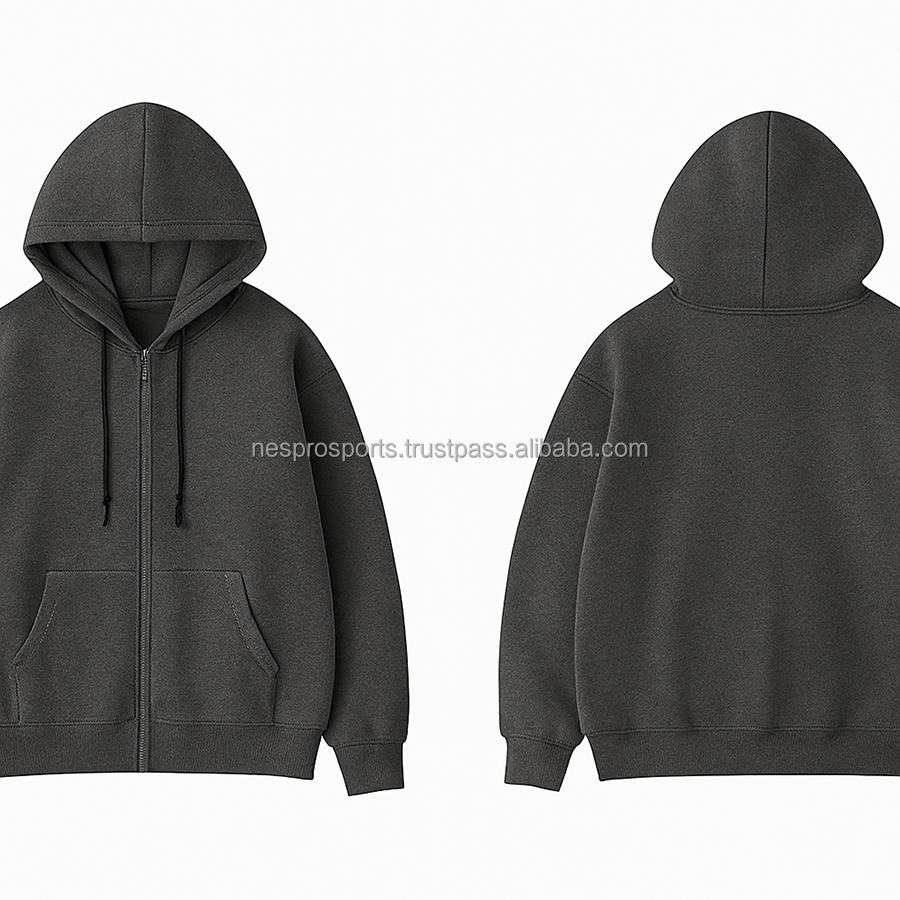 เสื้อฮู้ดซิปโอเวอร์ไซส์ สตรีทแวร์ หนัก 450GSM ทรงหลวม ผ้าฟลีซหนา 100% คอตตอน มีกระเป๋า ปักโลโก้ตามสั่ง