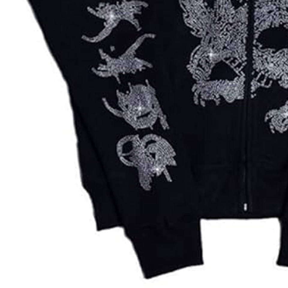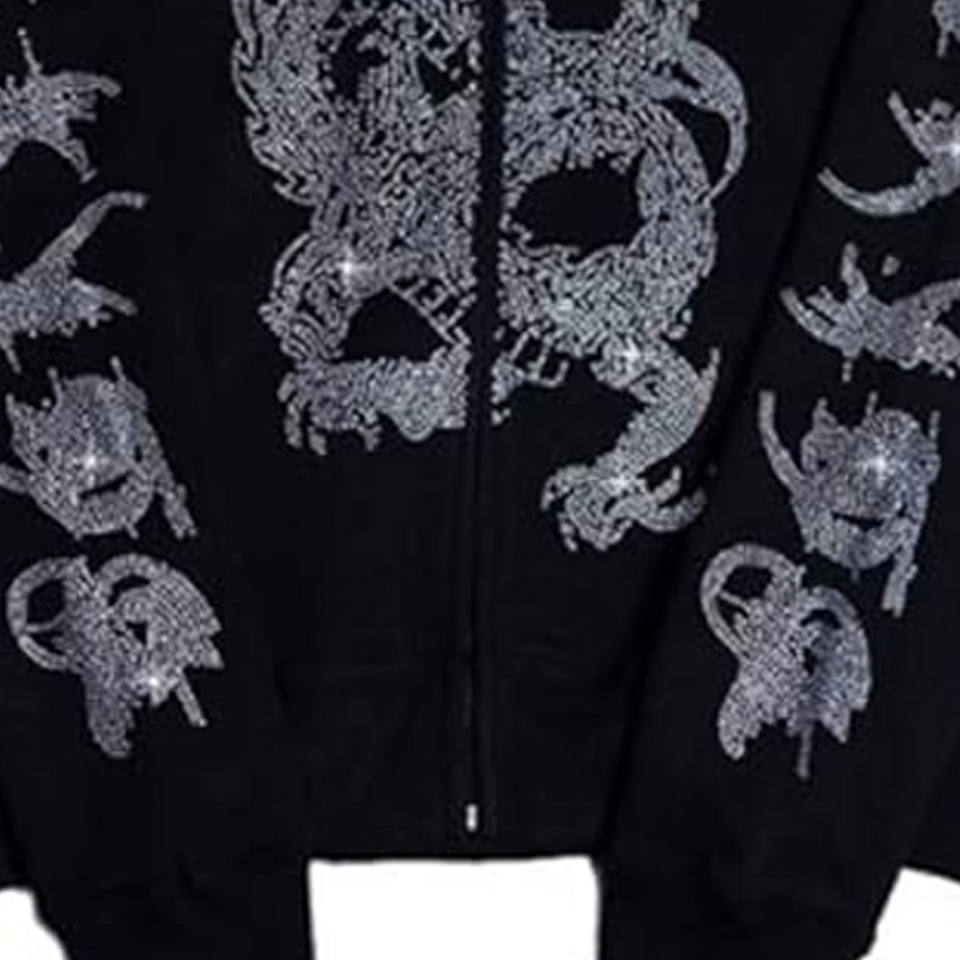 เสื้อฮู้ดฮิปฮอปโอเวอร์ไซส์ประดับพลอยเทียมแนวสตรีทเสื้อมีฮู้ดลายไรน์สโตนระยิบระยับดีไซน์ทันสมัยใช้ได้ทั้งชายและหญิง