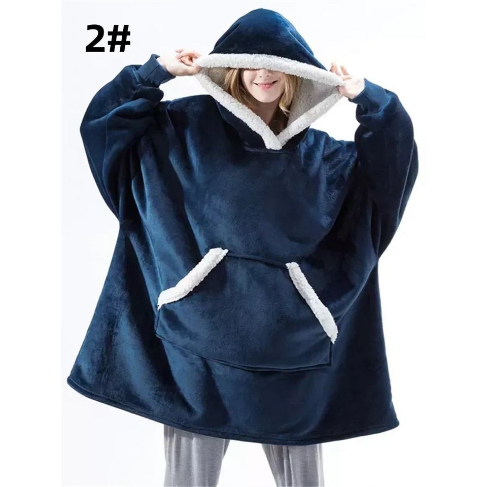 ผ้าห่มมีฮู้ดขนาดใหญ่มีแขนเสื้อสเวตเชิ้ตลายสก๊อตมีฮู้ดขนแกะฤดูหนาวกระเป๋าผู้หญิงฤดูหนาวฤดูใบไม้ร่วง-B0858-Beige