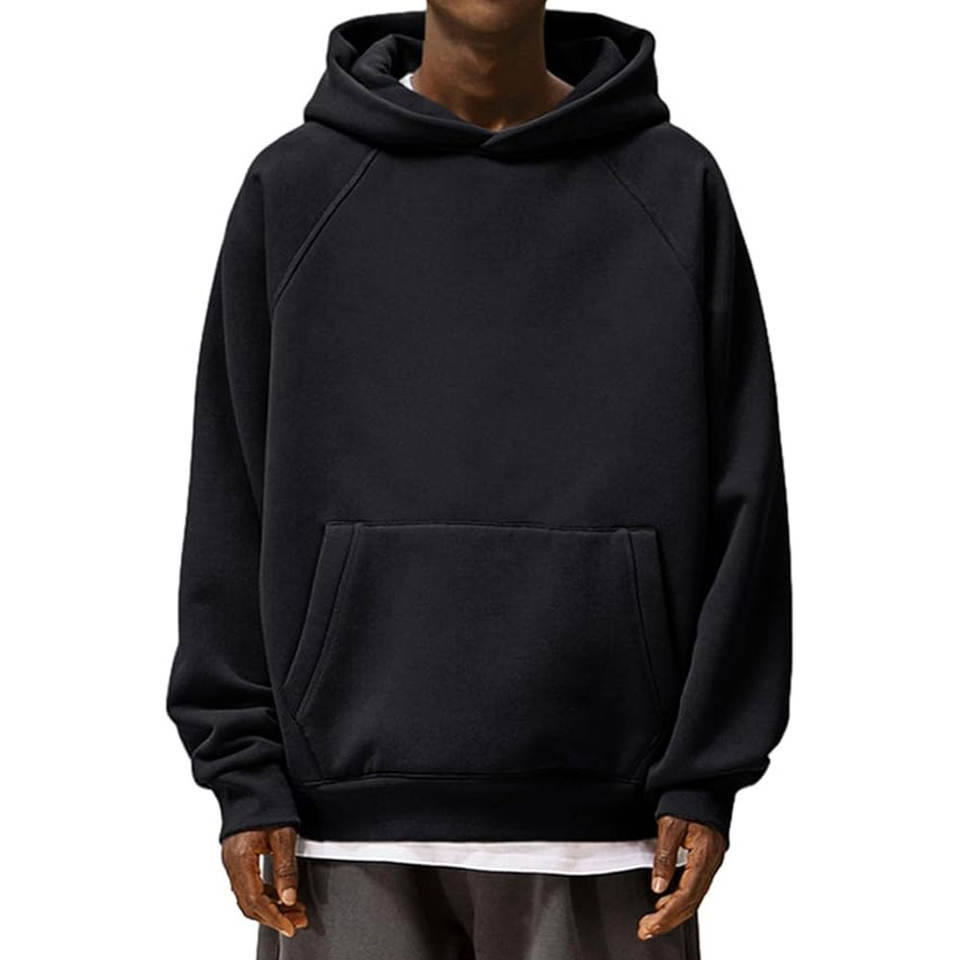 เสื้อฮู้ดดี้โอเวอร์ไซส์สำหรับผู้ชาย เสื้อสเวตเชิ้ตผ้าฟลีซเนื้อนุ่ม ทรงหลวม สไตล์พื้นฐาน เสื้อฮู้ดแบบเรียบง่าย ทรงหลวม ใส่ได้ทั้งชายและหญิง ไหล่ตก