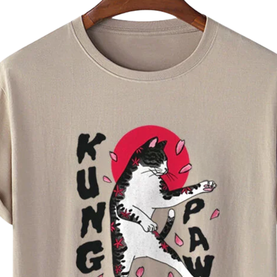 เสื้อยืดลายกราฟิกแมว Kung PAW ขนาดใหญ่เสื้อแนวสตรีทพิมพ์ลายคิตตี้คาราเต้ตลกเสื้อลำลองฤดูร้อนเสื้อยืดผ้าฝ้ายออกแบบโลโก้ได้ตามต้องการ