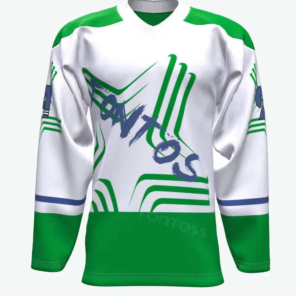 เสื้อฮอกกี้น้ำแข็งแบบสั่งทำพิเศษ น้ำหนักเบา ขนาดใหญ่พิเศษ ปักลายตามสั่ง ขายส่งสำหรับวิทยาลัย ผลิตจากโพลีเอสเตอร์ 100%