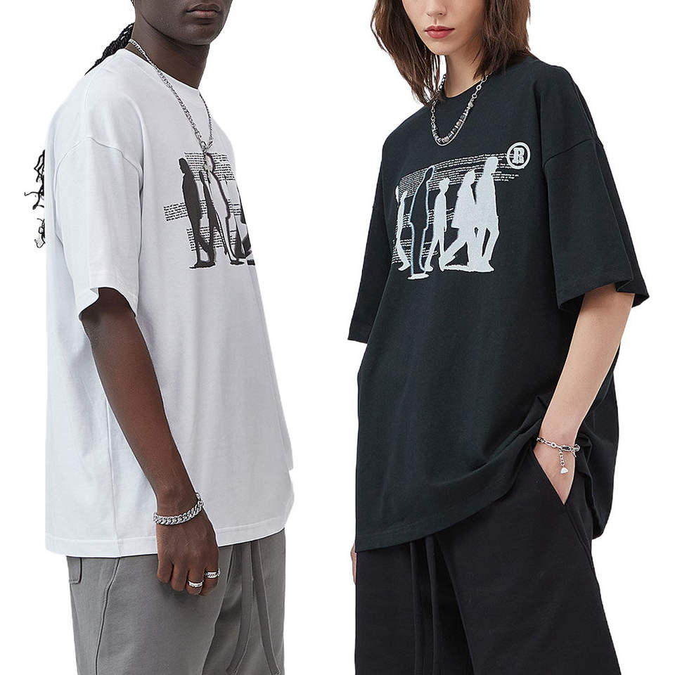 เสื้อยืดโอเวอร์ไซส์ผู้ชาย ผ้าฝ้ายเนื้อหนัก ระบายอากาศได้ดี พิมพ์ลายซิลค์สกรีน แห้งเร็ว และป้องกันการเป็นขุย
