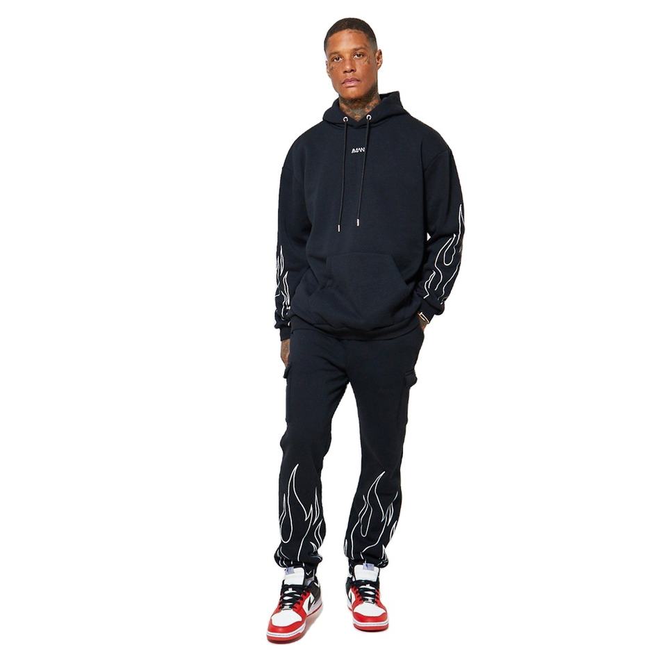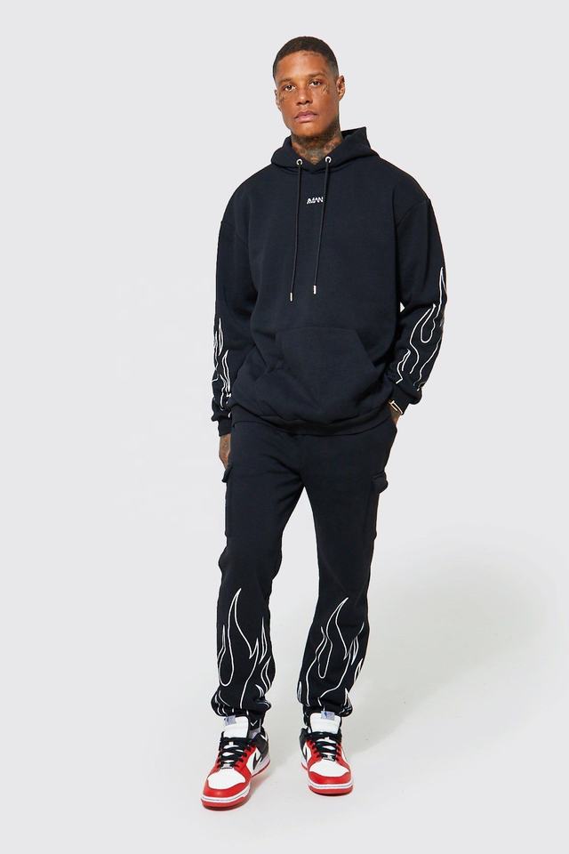 ชุดวอร์มคาร์โก้โอเวอร์ไซส์สำหรับผู้ชายชุดวอร์ม2ชิ้นสำหรับวิ่งจ๊อกกิ้งเป็นมิตรกับสิ่งแวดล้อม