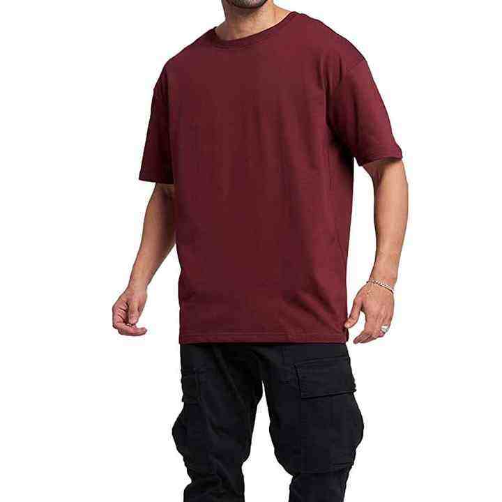 เสื้อยืดผู้ชายโอเวอร์ไซส์แขนสั้นผ้าเทอร์รี่ถักลายไหล่สีทึบพิมพ์โลโก้ได้ตามต้องการ