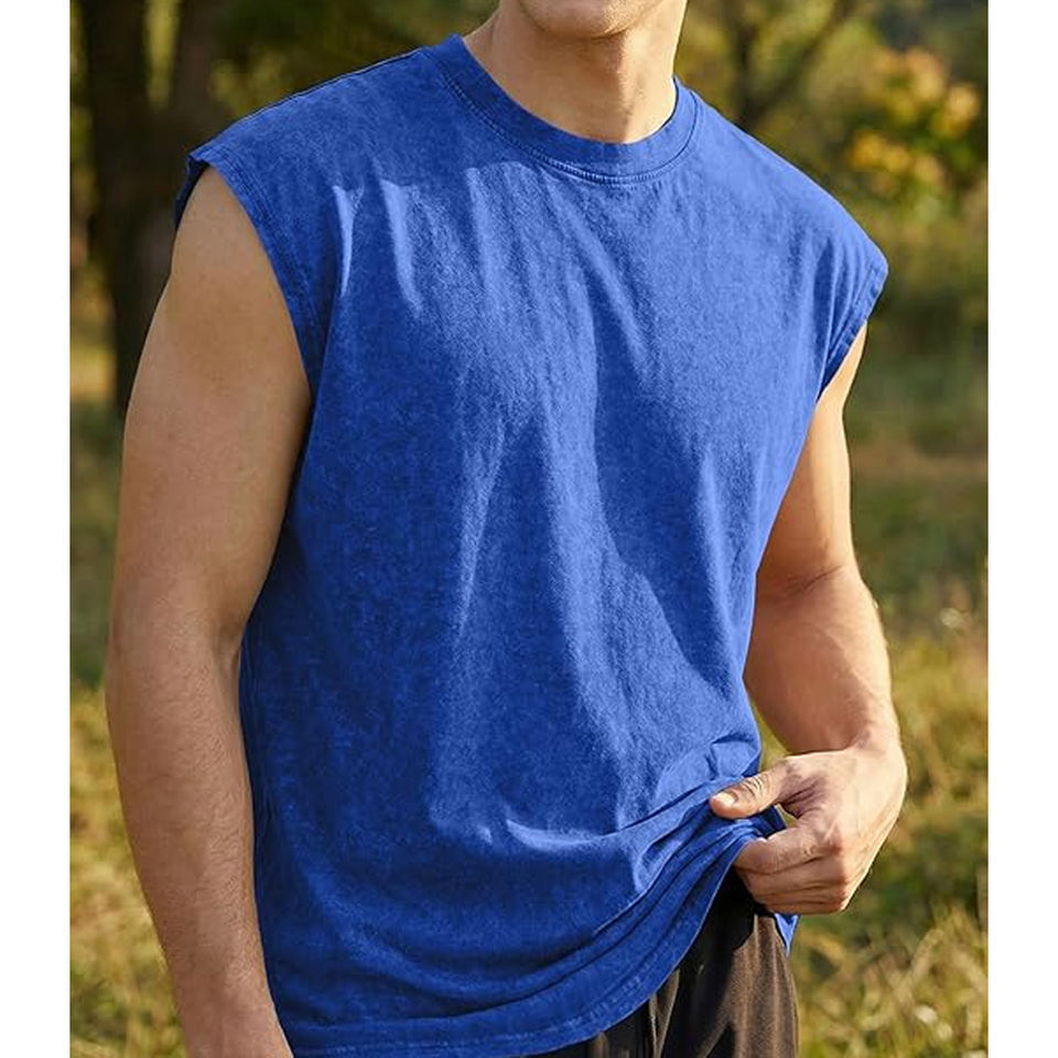 เสื้อกล้ามออกกำลังกายผ้าฝ้ายหนาน้ำหนักมากสำหรับผู้ชาย ไซส์ใหญ่ แฟชั่นสตรีทแวร์ฤดูร้อน ทรงหลวม ขอบเสื้อแบบย้อมสีเอซิด
