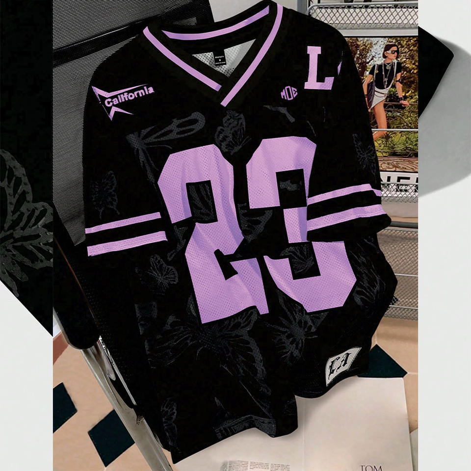 เสื้อเจอร์ซีย์อเมริกันฟุตบอลตาข่ายขนาดใหญ่ลายผีเสื้อ คอวี สตรีทแวร์ ชุดกีฬา ทีมแวร์ เสื้อกีฬา ผู้ผลิต OEM ขายส่งจำนวนมาก สหรัฐอเมริกา