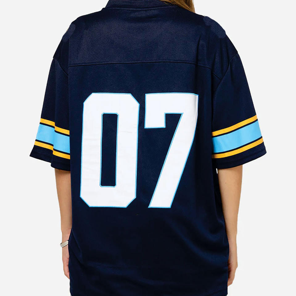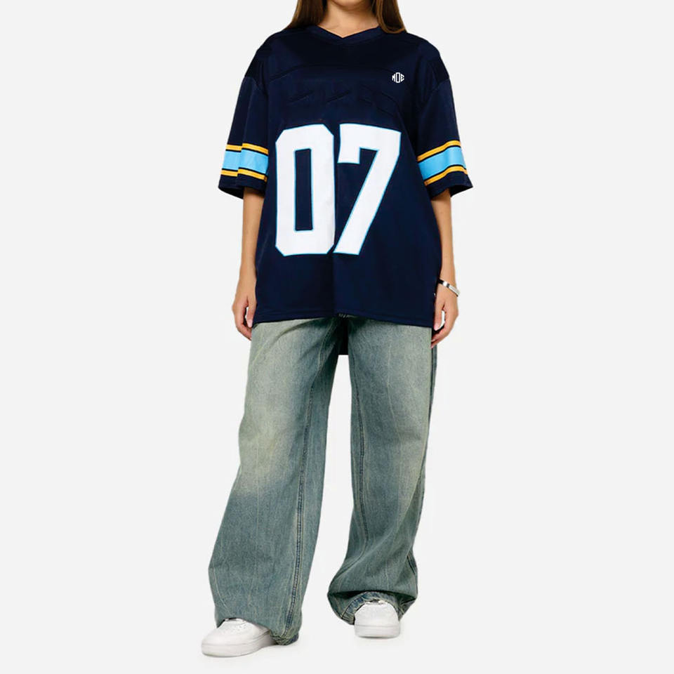 เสื้อเจอร์ซีย์อเมริกันฟุตบอลตาข่ายขนาดใหญ่พิเศษสำหรับผู้หญิง ระบายอากาศได้ดี แขนสั้น พิมพ์ลายหมายเลข สตรีทแวร์และลำลอง ขายส่ง OEM เสื้อยืดคอกลม