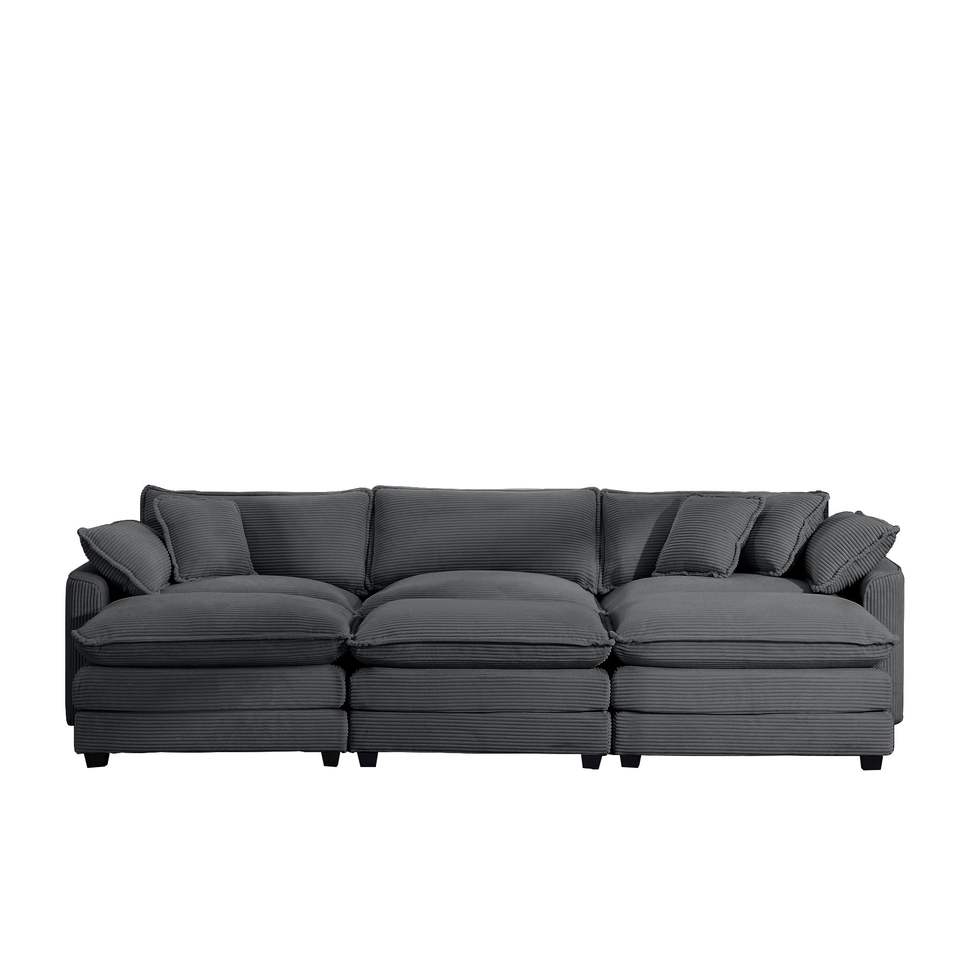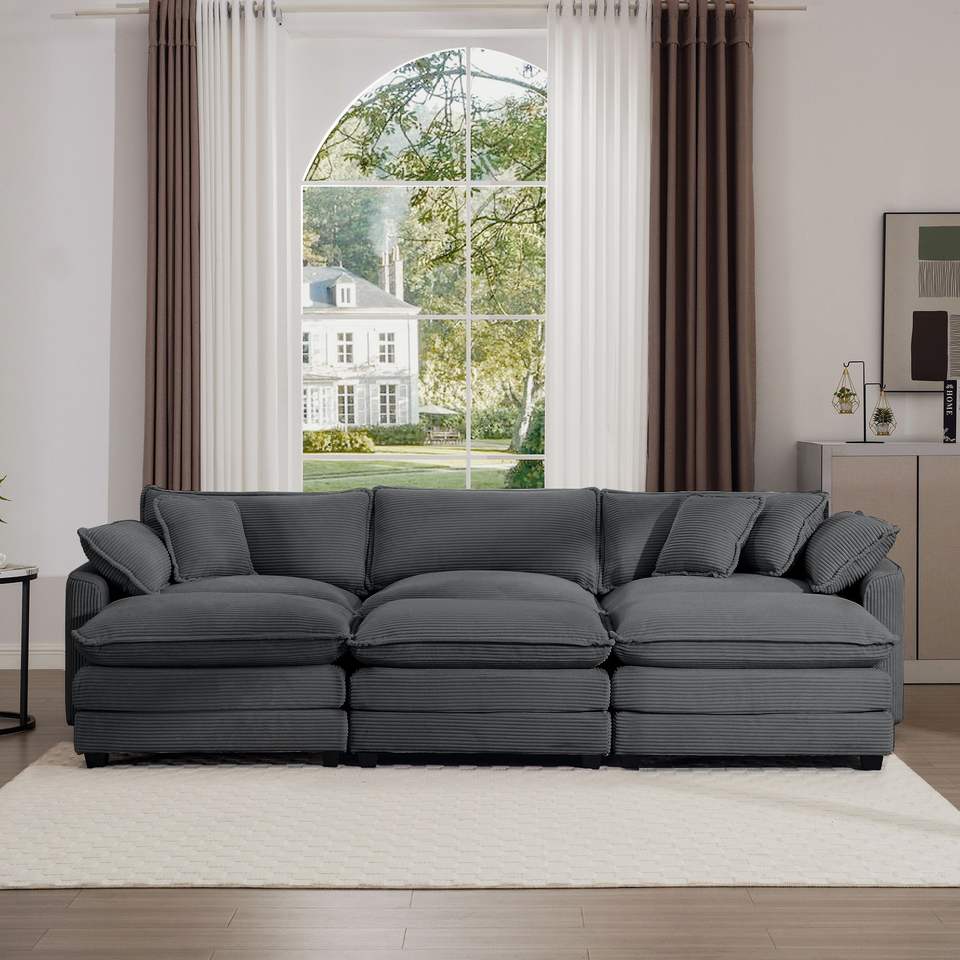 โซฟาเข้ามุมรูปตัวแอลแบบโมดูลขนาดใหญ่ พร้อมออตโตมันแบบพกพา พนักพิงต่ำและที่นั่งลึก เหมาะสำหรับบ้านหรืออพาร์ตเมนต์