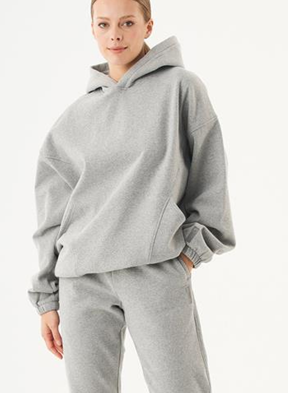 ชุดฮู้ดดี้สีเทาโอเวอร์ไซส์แบบไม่มีเชือกผูก ผ้าฟลีซบุซับใน สไตล์คนเมือง พร้อมชายเสื้อปรับได้ ใส่สบายทันสมัยสำหรับทุกฤดูกาล โดย Ako