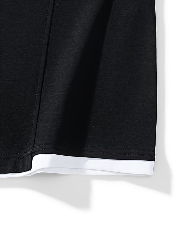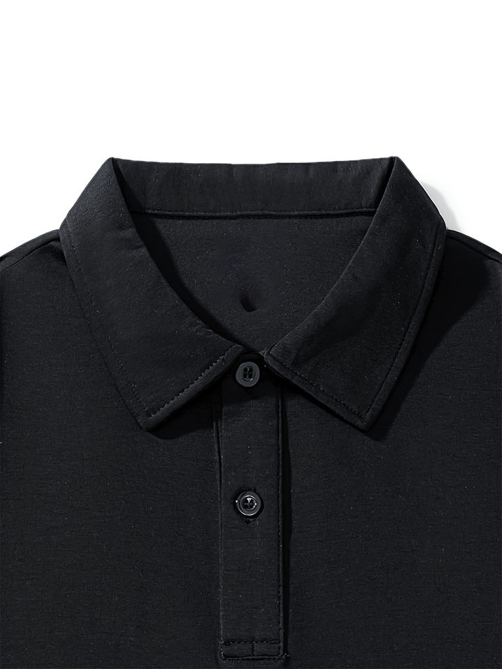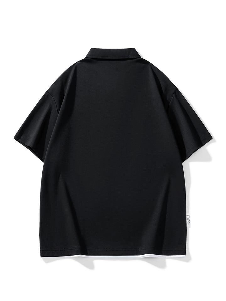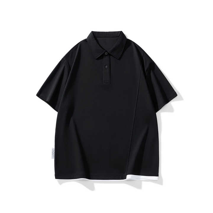 เสื้อโปโลโอเวอร์ไซส์สำหรับผู้ชาย ดีไซน์ไหล่ตกทันสมัย แขนสั้น ผ้าสีพื้น เรียบง่าย สไตล์ลำลอง ธุรกิจ และสตรีทแวร์ เสื้อยืดผู้ชาย