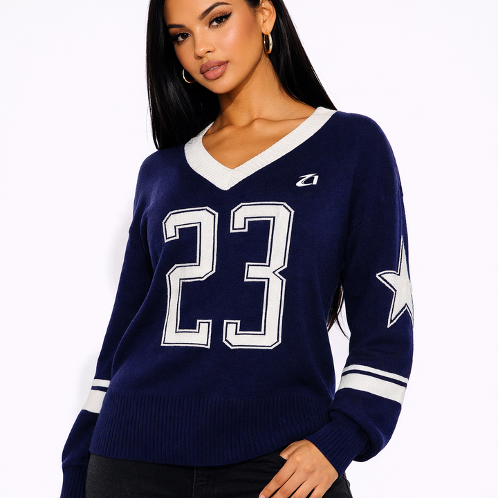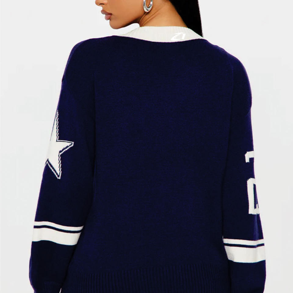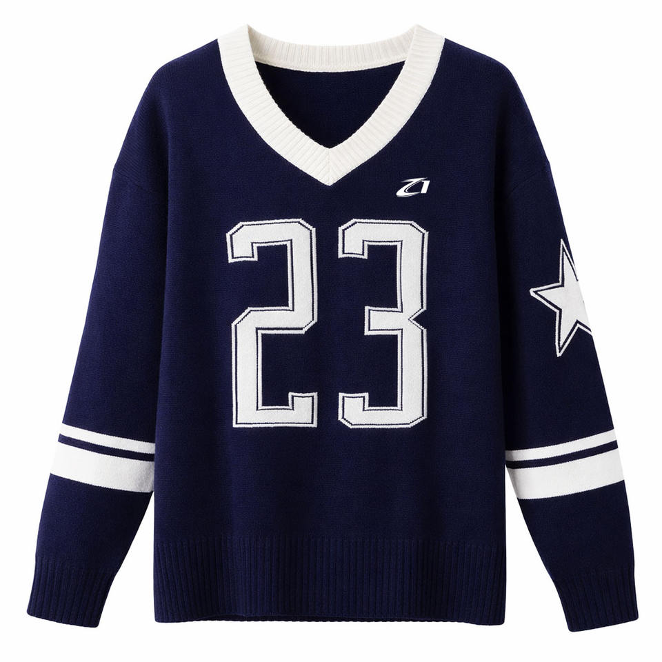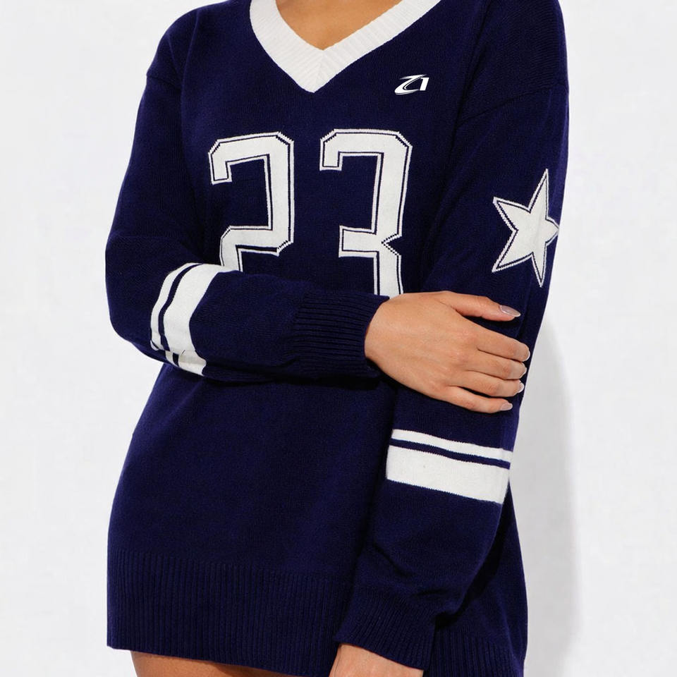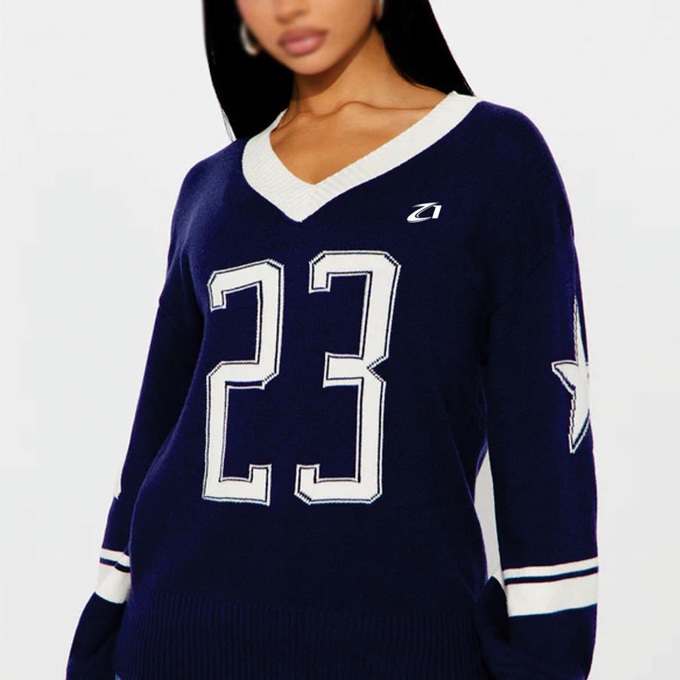 เสื้อเจอร์ซีย์กีฬาคอวีทรงโอเวอร์ไซส์ พรีเมียม ผ้าถัก ดีไซน์ตัวเลข สตรีทแวร์ แขนยาว แบบสวม ยูนิเซ็กส์ ผ้าตาข่าย ลายอเมริกันฟุตบอล