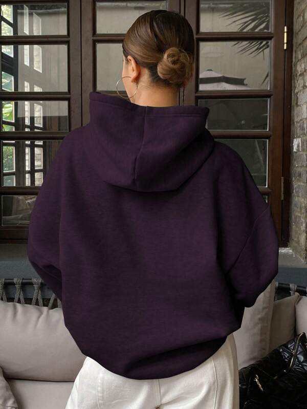 เสื้อฮู้ดสีม่วงโอเวอร์ไซส์ไหล่ขนแกะรุ่นเฮฟลีซสวมหัวลำลองแนวสตรีทแวร์เสื้อกันหนาวทรงหลวมใส่ให้ความอบอุ่นสำหรับฤดูหนาว