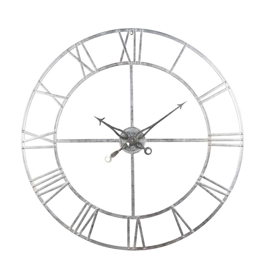 นาฬิกาแขวนผนังโลหะตัวเลขโรมันขนาดใหญ่ สไตล์อินดัสเทรียล สีเงิน กรอบเปิด นาฬิกาตกแต่งสไตล์วินเทจ