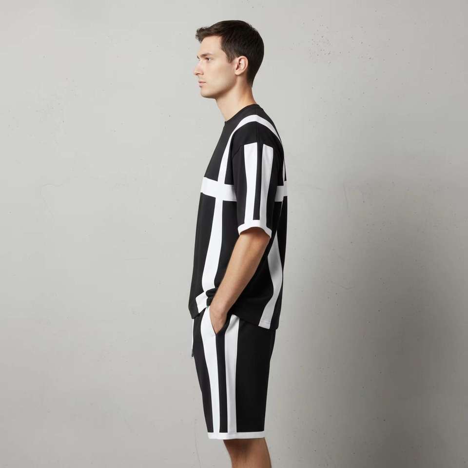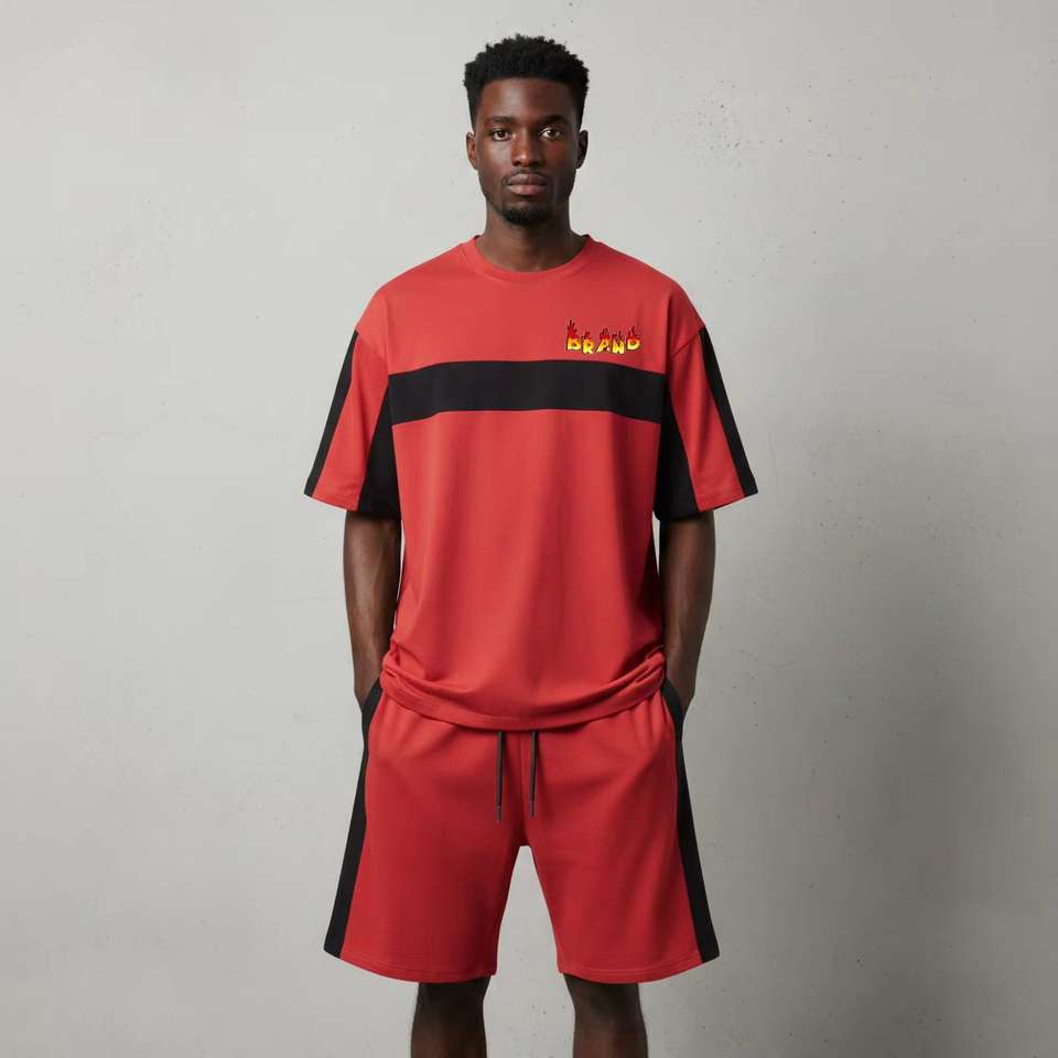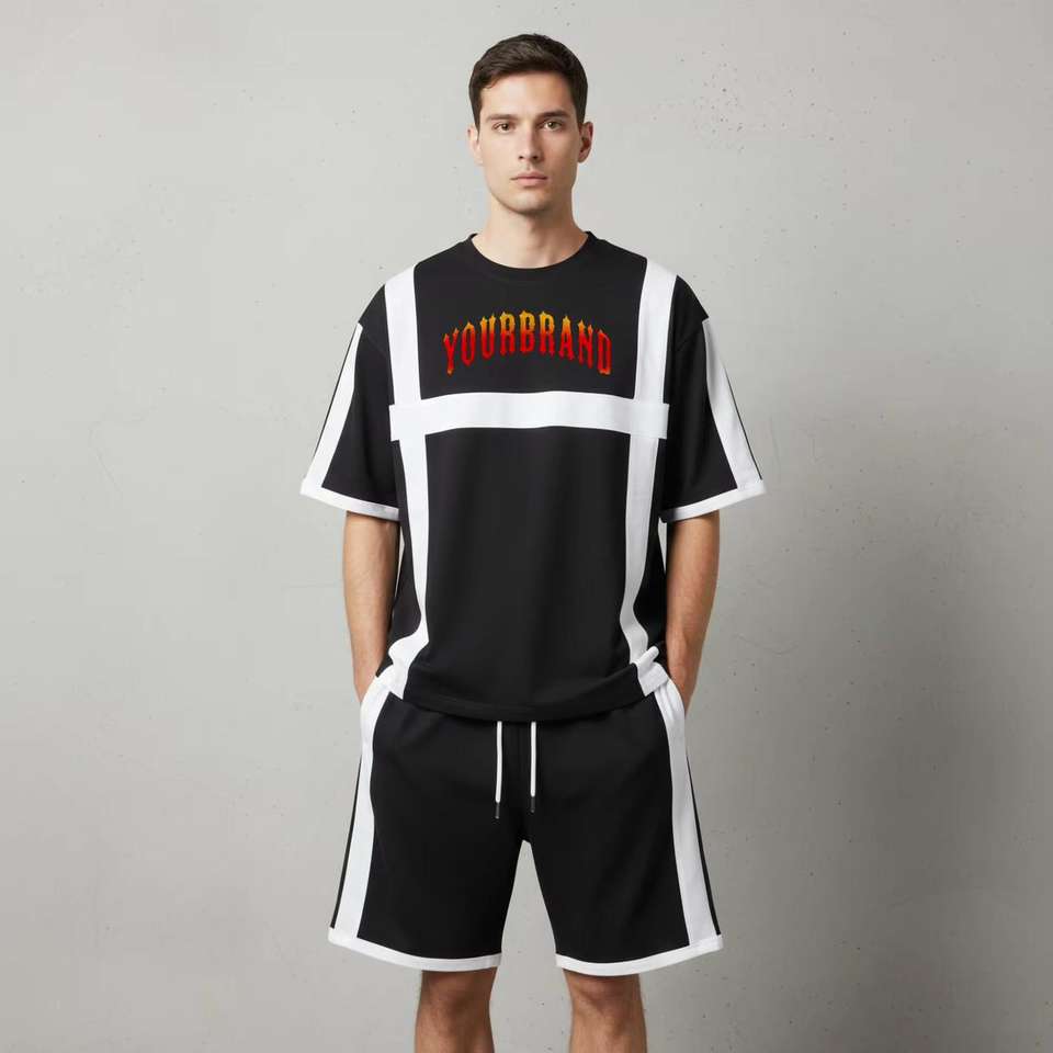 เสื้อยืดโอเวอร์ไซส์ลายสกรีน สตรีทแวร์ คุณภาพสูง ชุดกางเกงขาสั้นรัดเชือกสำหรับออกกำลังกาย ฟิตเนส ผู้ชาย
