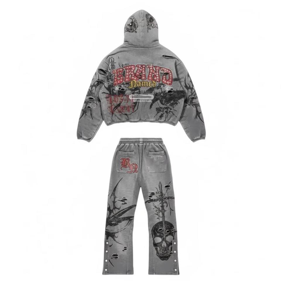 ชุดแทรคสูทพิมพ์ลายขนาดใหญ่ ประดับด้วยคริสตัล ผ้าเนื้อหนาและคุณภาพสูง เหมาะสำหรับสวมใส่สไตล์สตรีทแวร์ สำหรับทุกเพศ