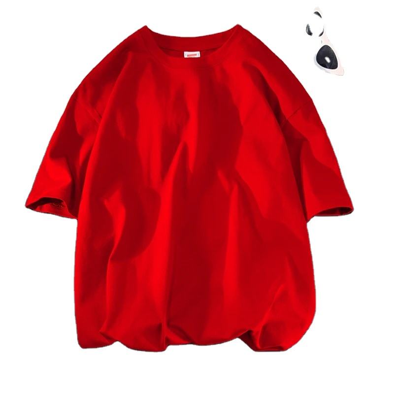 เสื้อยืดคอกลมแขนสั้นสำหรับผู้ชายทรงหลวมสีพื้นเสื้อสไตล์สตรีทแวร์ผ้าฝ้ายระบายอากาศโลโก้แบบกำหนดเองด้านหน้าสำหรับฤดูร้อน