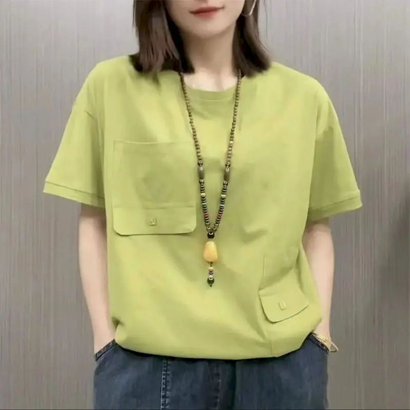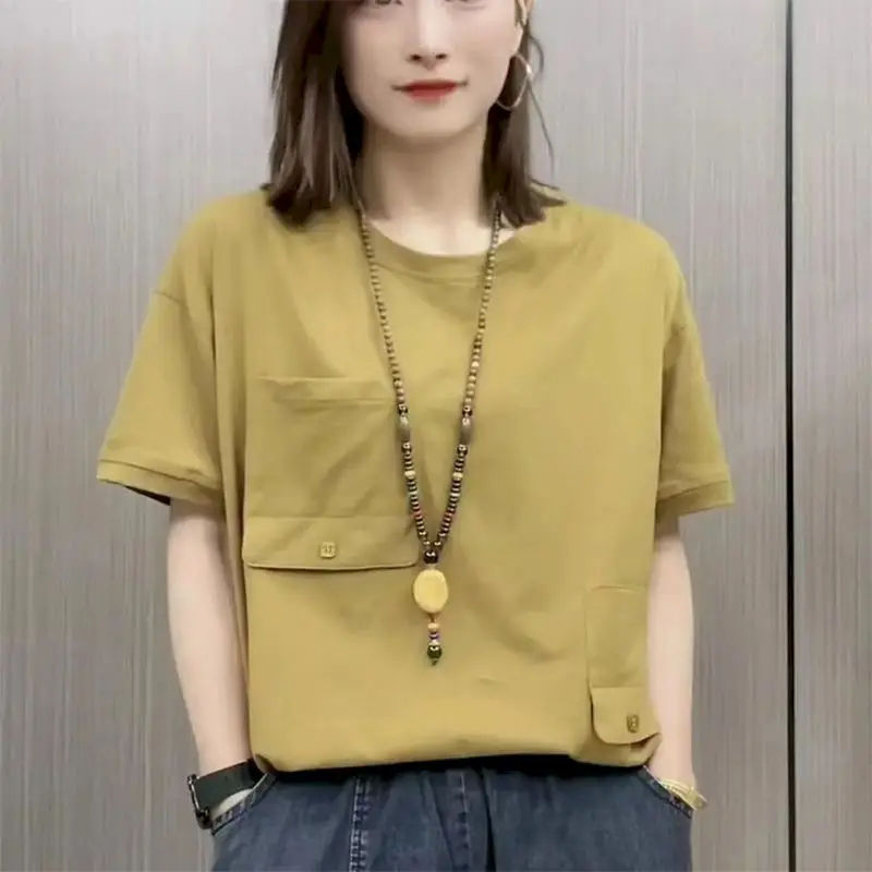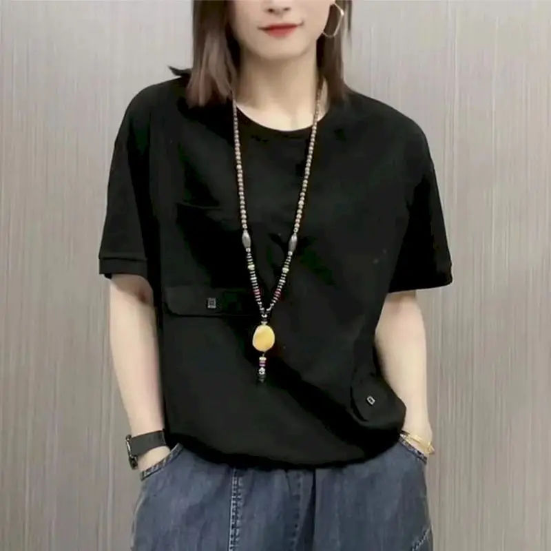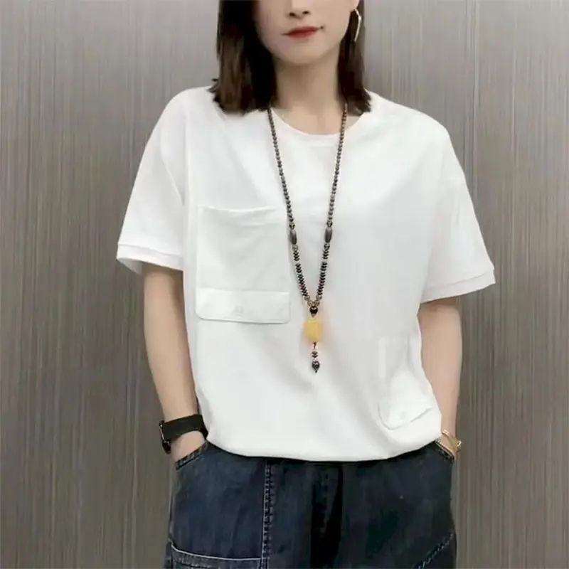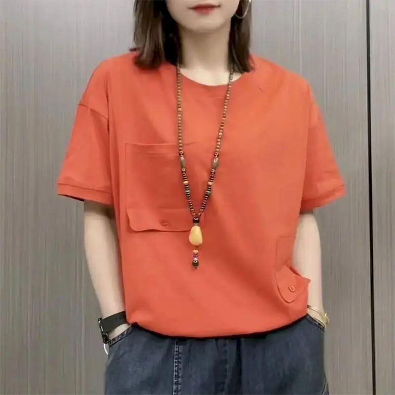 เสื้อยืดโอเวอร์ไซส์แฟชั่นผู้หญิง ดีไซน์กระเป๋าเสื้อยืดลำลองทรงหลวมแขนสั้นเสื้อทรงเข้ารูปฤดูร้อน 2025 เสื้อยืดบางเทรนด์ Y2k