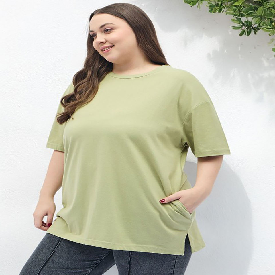 เสื้อยืดคอกลมโอเวอร์ไซส์สำหรับผู้หญิงและเด็กผู้หญิง, เสื้อยืดผ้าฝ้ายทอคุณภาพสูงสไตล์กระเป๋าสวมใส่ฤดูร้อน